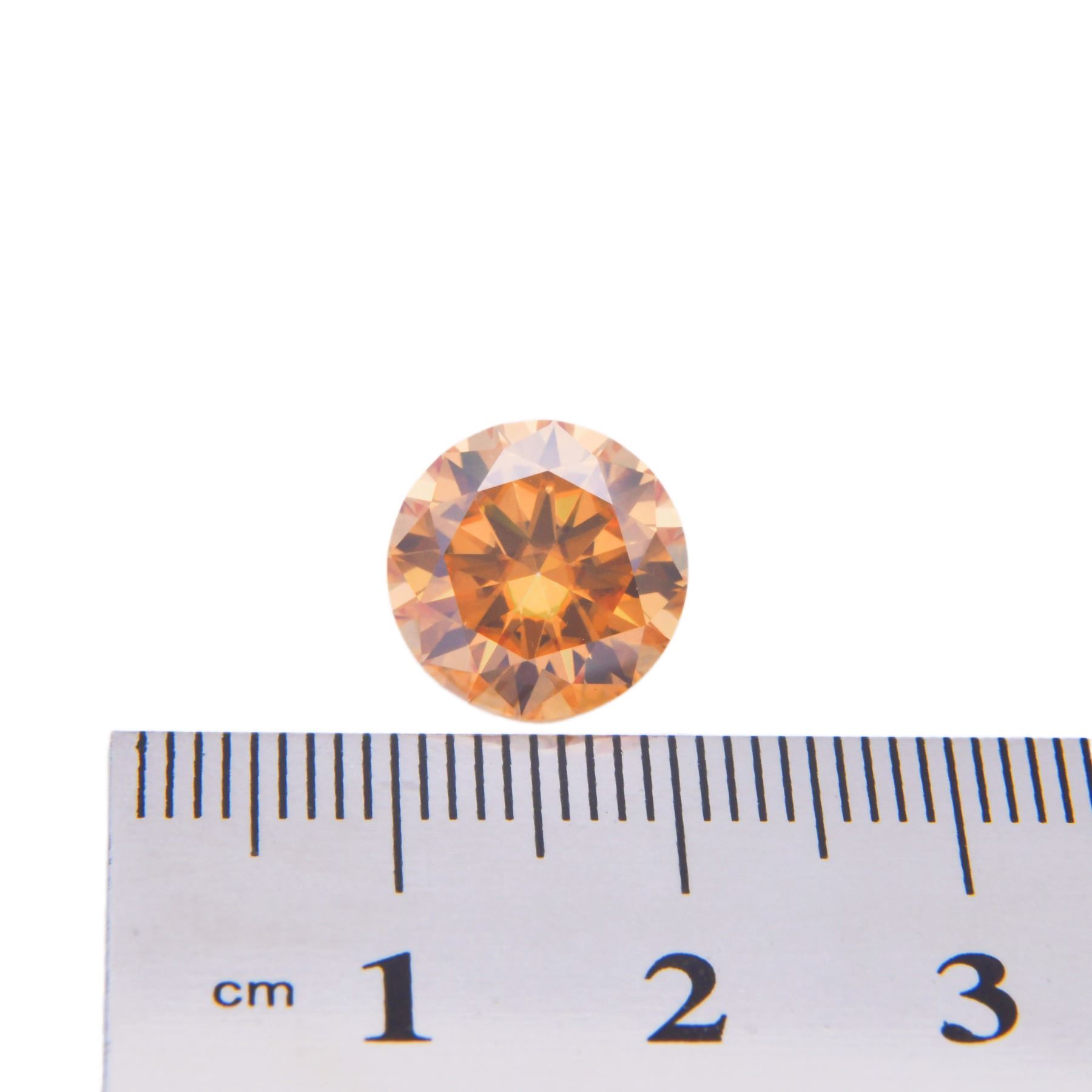 This Large 5 Ct VVs1 Moissanite is a Brilliant Round Cut Measure sing 11 mm. and is Gold Champagne in color. It is eye clean and bursting out with a full spectrum of colors. With a refractive index of 2.65-2.69, this Fire Moissanite exhibits more brilliance and fire than a diamond thanks to a dispersion that is 2.4 times higher than a natural diamond. It is also earth friendly and conflict free. With a 9.25 mohs measurement of hardness this moissanite will test positive for a diamond on almost any diamond tester. This Moissanite is Gorgeous and ready to mount.