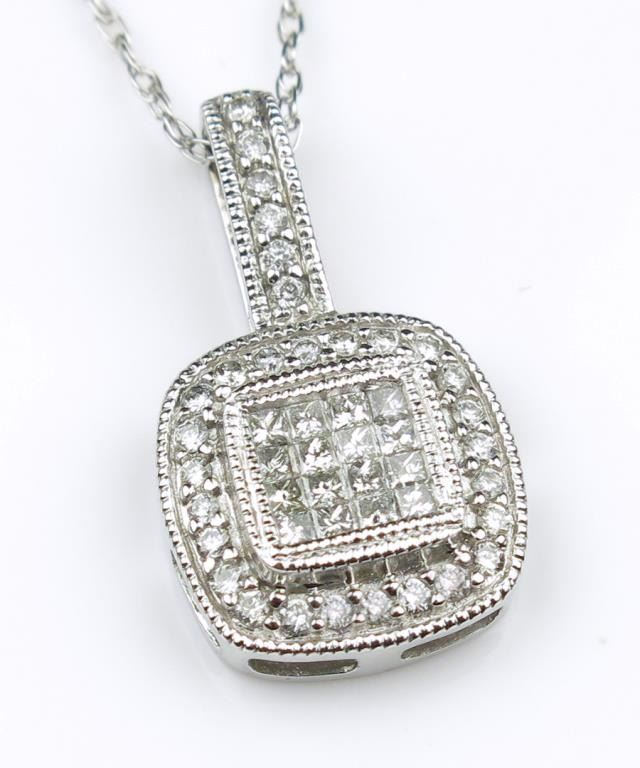 featuring 46 princess and round Diamonds weighing approx. 0.80 carats with F-G colors and VS/SI clarity set in 14 karat vintage style white gold setting.