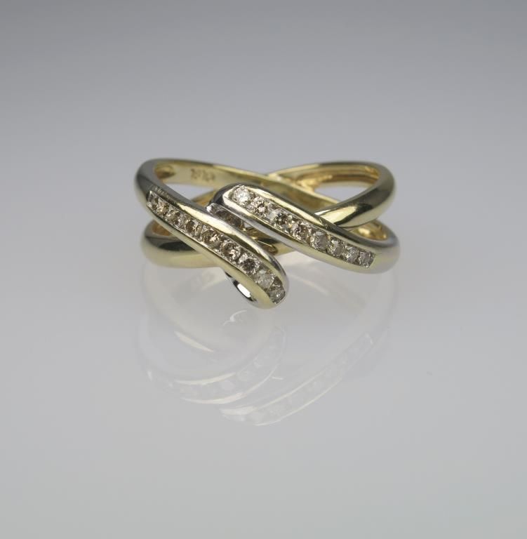 Design. 17 channel set round cut Diamonds weighing approx. 0.30 carats with H-I colors and SI clarity set in 10 karat yellow gold.