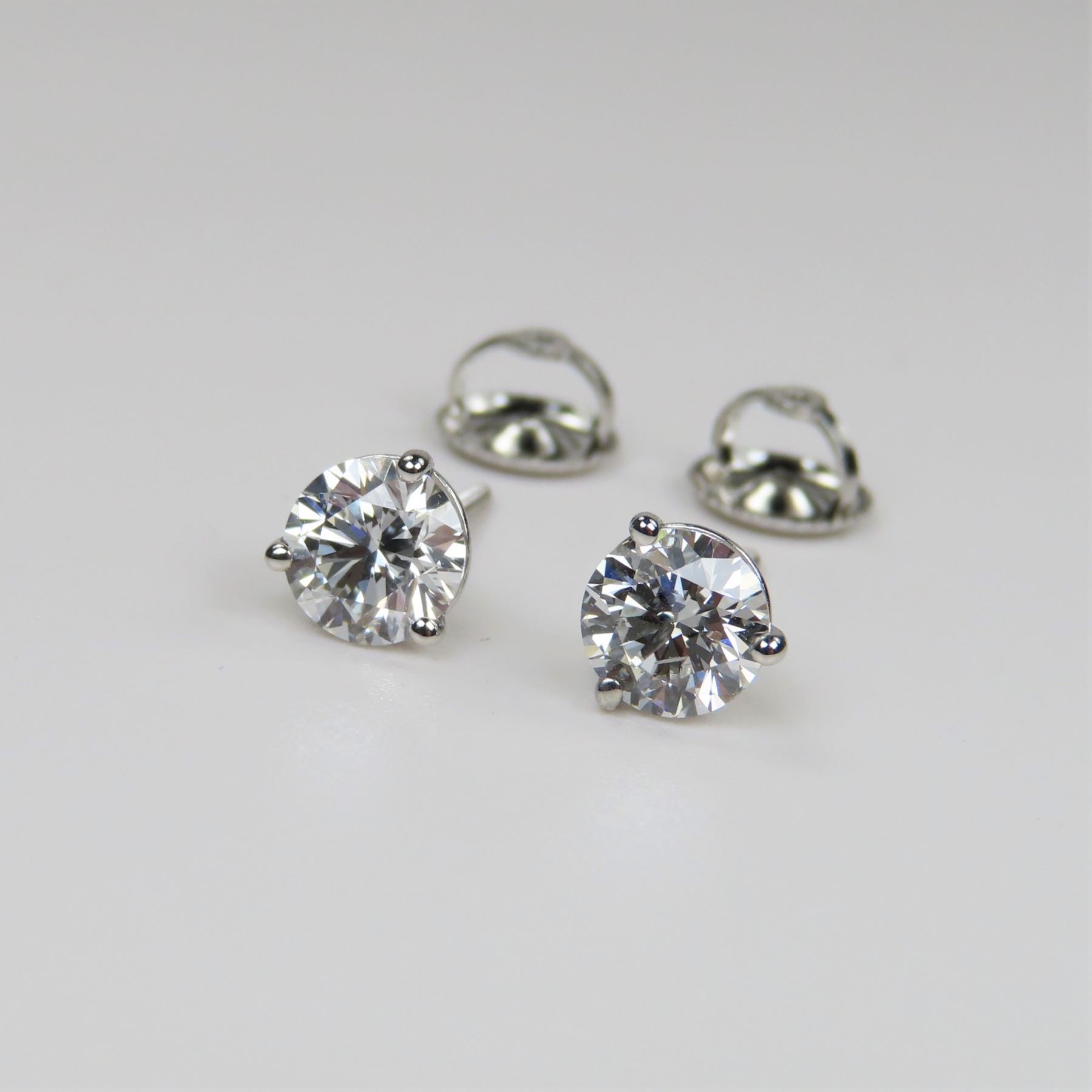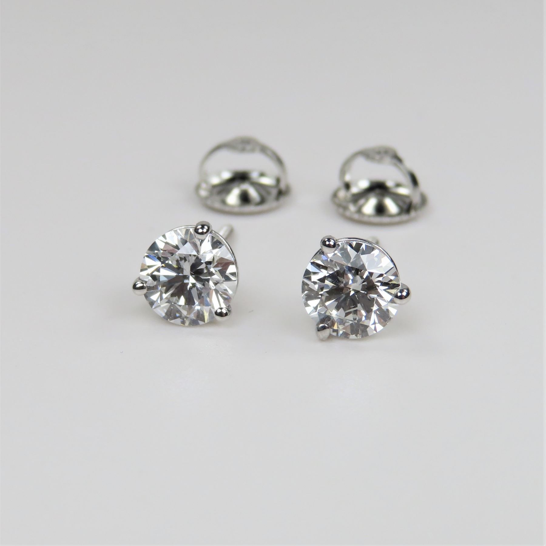 featuring 2 ‘IDEAL’ cut Diamonds weighing approx. 1.50 carats with F-G colors and SI clarity set in 14 karat white gold Martini style settings. Retail $5,000-$6,000