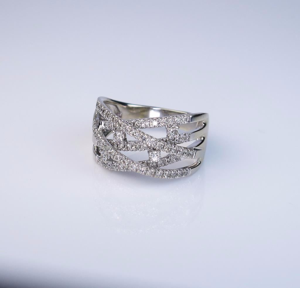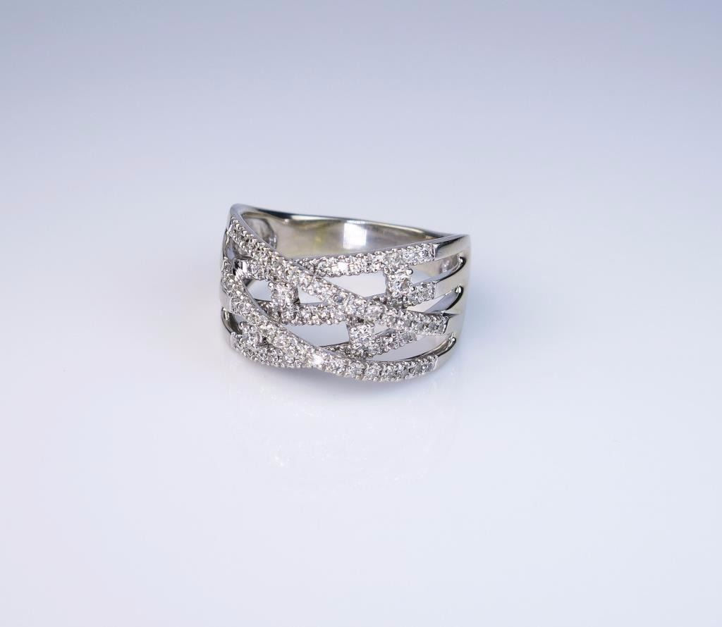 Dazzling “EFFI” Cross Over Diamond Ring set with 72 round diamonds weighing approx. 1.20-1.50 carats of H-I colors and VS/SI clarity set into 14 karat white gold. Retail $3,000-$4,000 Estimates $2,000-$3,000