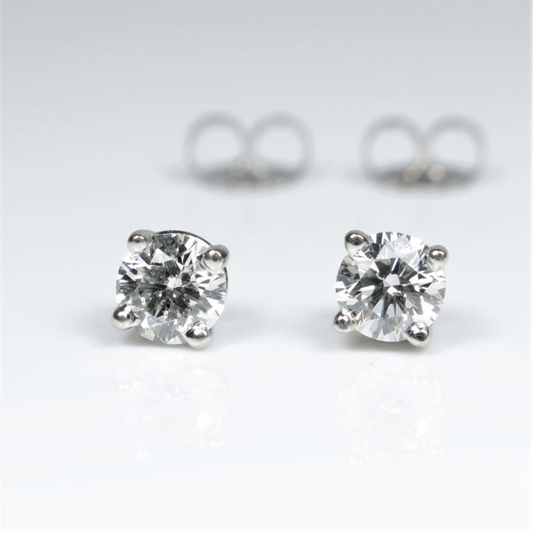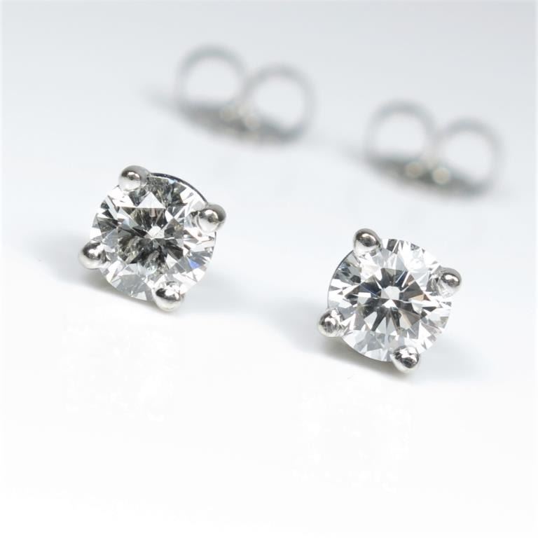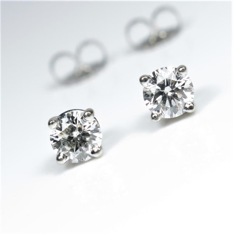 Dazzling ‘IDEAL’ cut Diamond Stud Earrings weighing approx. 0.85-0.90 carats with G-H colors and VS clarity set in 14 karat white gold Tiffany style settings. Retail $3,000-$4,000 Estimates $2,000-$3,000