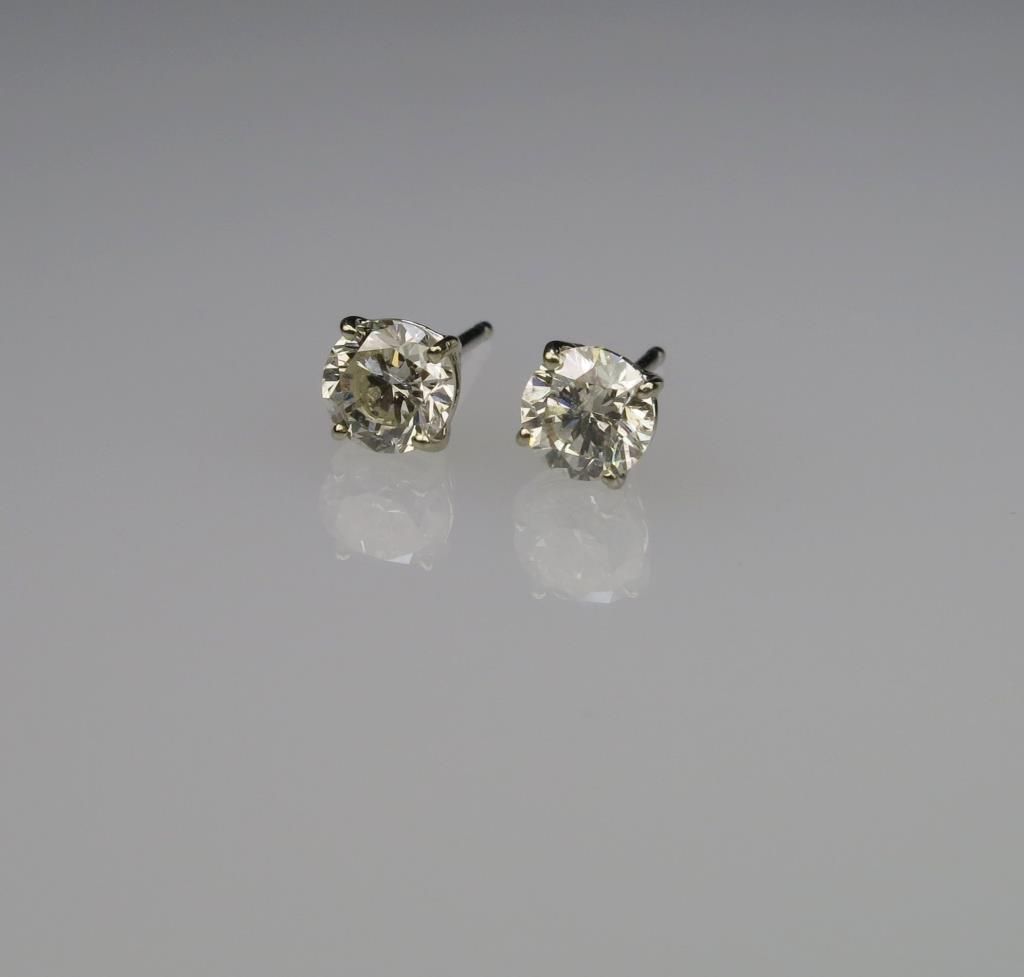 Dazzling Pair of Round Diamond Stud Earrings weighing approx. 1.00 carat total with H-I colors and SI clarity set in 14 karat white gold. Retail $2,000-$3,000 Estimate $1,500-$2,000
