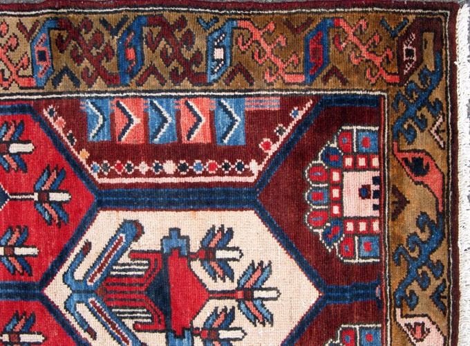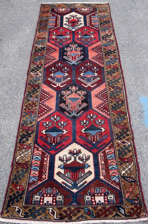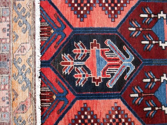 Dazzling colors and charming Persian Samane Bakhtiari Rug. Made of all natural, hand woven, vegetable dye, and baby lamb's wool pile on cotton foundation. This is a dynamic and exciting Bakhtiari with bold and brightly colored composition. These rugs are prized for their nomadic authenticity. Bakhtiari rugs are named after the Bakhtiari tribes, which is one of the oldest, most noble and well known Persian tribes. This large migratory tribe resides in the west central part of Iran. Different sub-tribes of Bakhtiari’s produce rugs with their own distinctive design and personality. Samane-Bakhtiari is among the finest most artistic and have a compact weaves. These Bakhtiari’s are sometimes referred to as 'Bibi-Baft" basically meaning” woven by woman" of the household. Please notice how impressive the color combinations and how vivid and happy looking they are. Size: 9 feet 6 inches X 3 feet 4 inches. Country of origin: Iran.