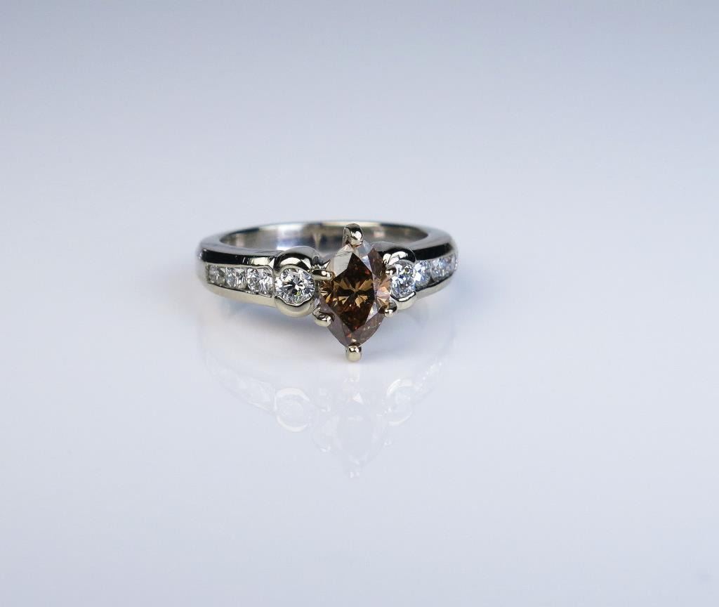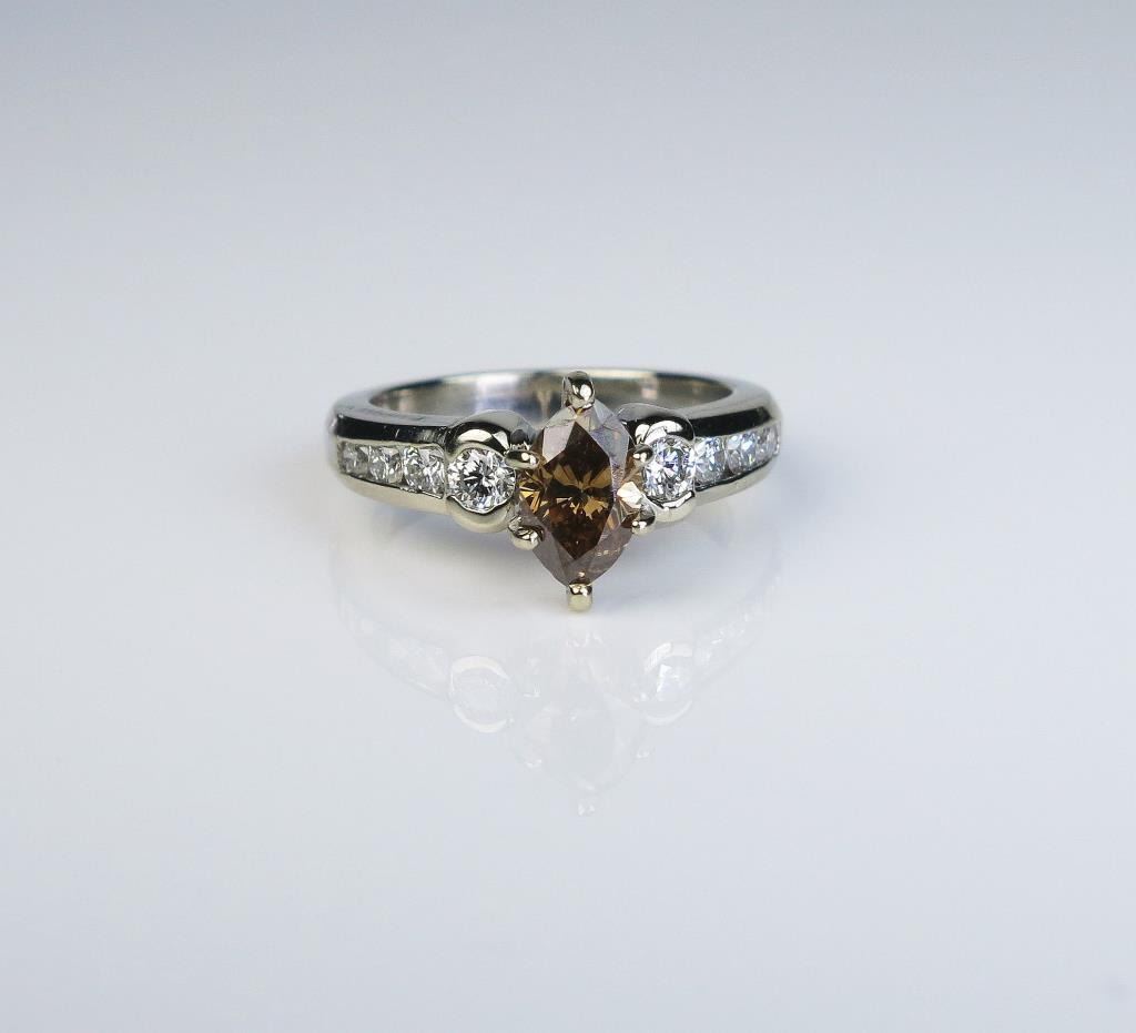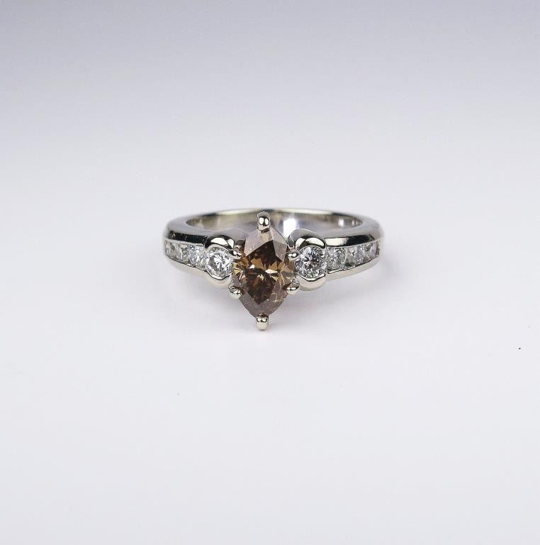 Marquise diamond weighing 1.07 carats of VS clarity and 8 round ‘IDEAL’ cut diamonds weighing approx. 0.50 carats of F-G colors and VVS/VS clarity set in a 14 karat white gold setting Retail $4,000-$5,000 Estimates $2,000-$3,000