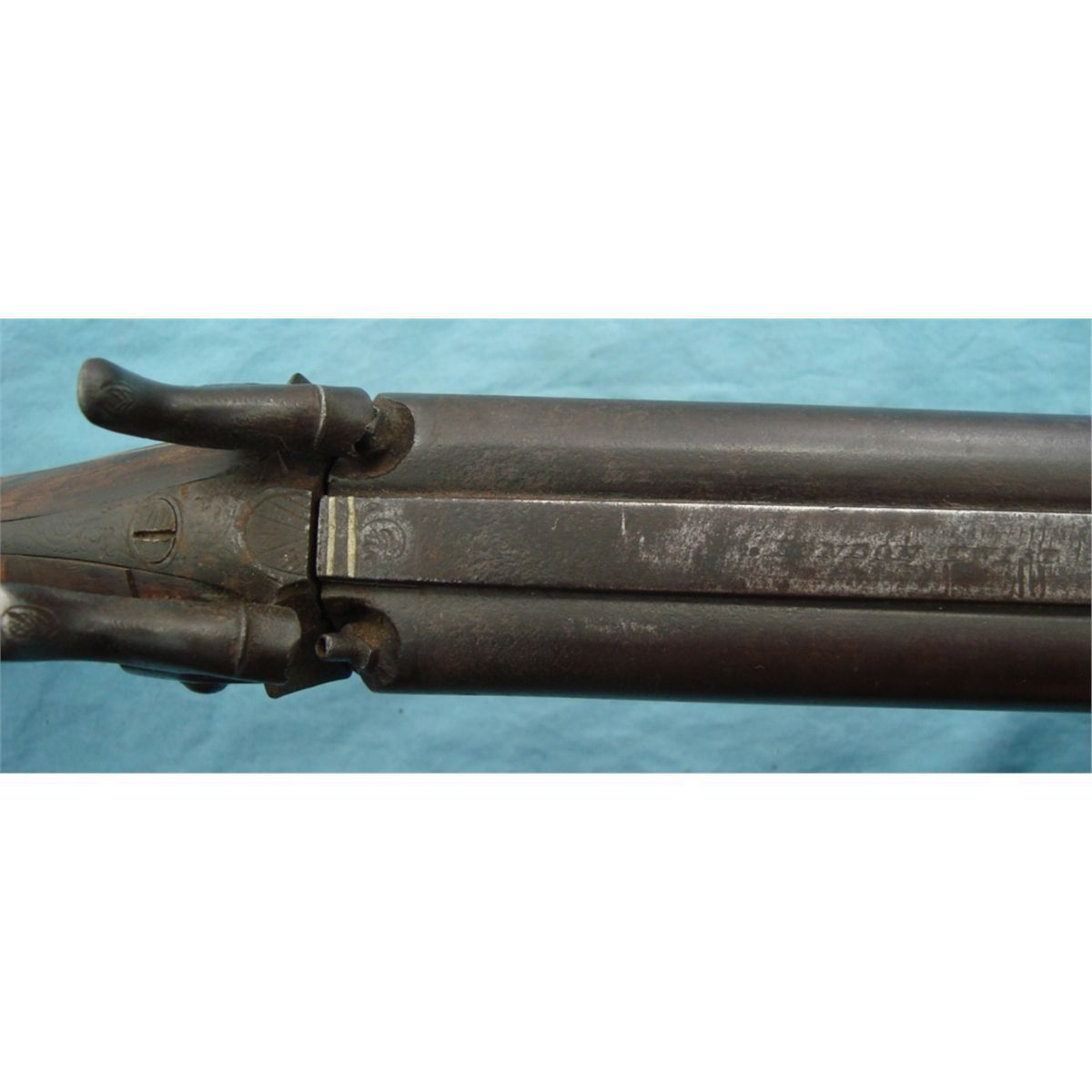#NSN; Antique. 40" bbls. approx 20 ga. bores. Marked "London Twist:". Walnut stock. Overall fair condition.