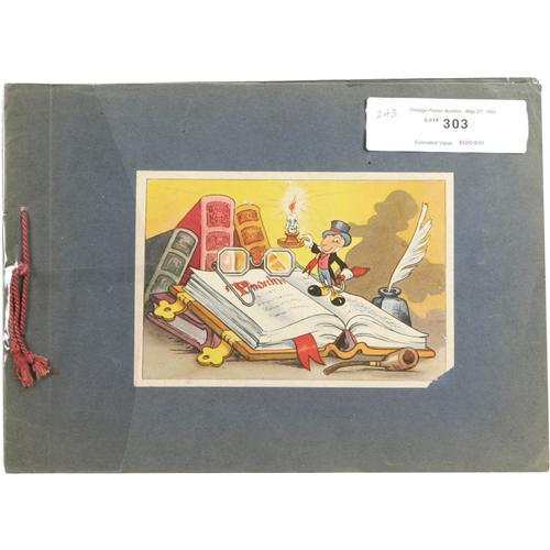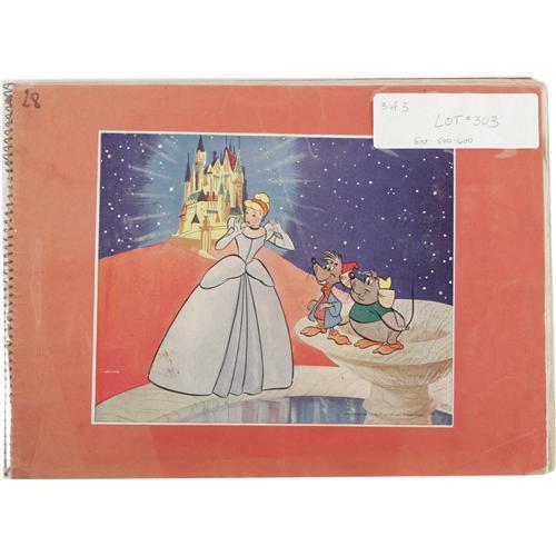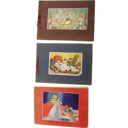 <B>De Beukelaer Disney Album, Group of 3 (circa 1930s-50s).</B></I> European cookie manufacture De Beukelaer published these colorful chromograph albums, to hold the little cards, or ""chromies,"" placed inside packages of chocolate biscuits (cookies). They are similar to British cigarette cards, with most cards measuring 2 2/3"" x 2"" (some are larger). The album tells the story, based on a classic Disney animated feature film; kids would then collect the cards and paste them in as illustrations. Included here are three albums: Snow White, Pinocchio, and Cinderella. Each album contains the full set of chromies (100 each in the first two, 120 in the last), with text in French. Average condition is Very Good.<BR><BR><b>Shipping:</b> Flat Material, Small (<a target=""_blank"" href=""http://www.heritageauctions.com/common/shipping.php"">view shipping information</a>)