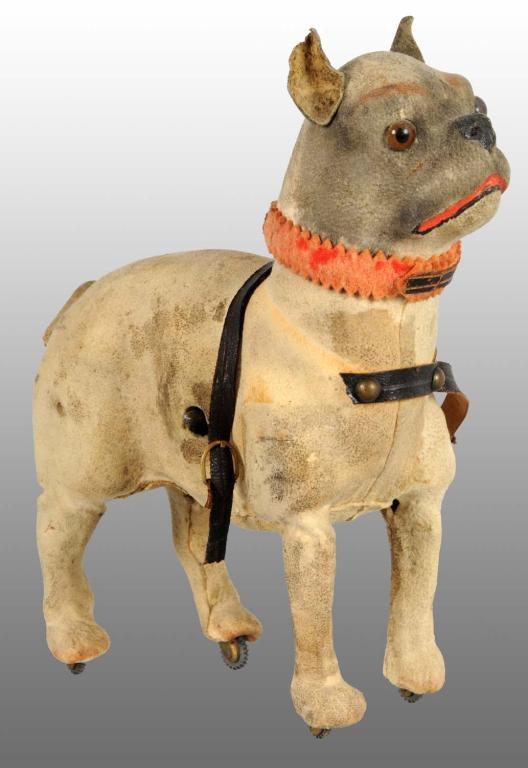 Description Soft cloth covered. When wound, dog walks and sluggishly turns head. Leash is broken and key is present. Condition (Very Good). Size 6" x 7".