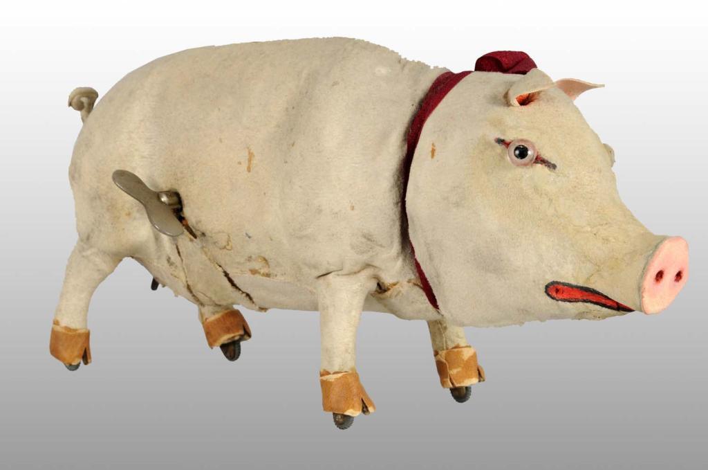 Description Soft cloth covered. Working. When  wound, pig walks, turns head, and oinks. Some  minor cloth scuffs but no damage. Condition (Excellent). Size 11" x 5".