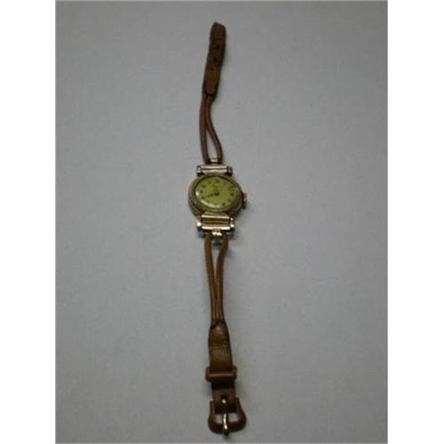 Women's De Frece Wind up Watch. In good working condition with a few scratches around the bezel from usage. Nice leather band, that's starting to show it's age. Stamped on back ACME, 10K ROLLED GOLD FILLED. Nice vintage watch. Very dainty and delicate. Great collector watch.