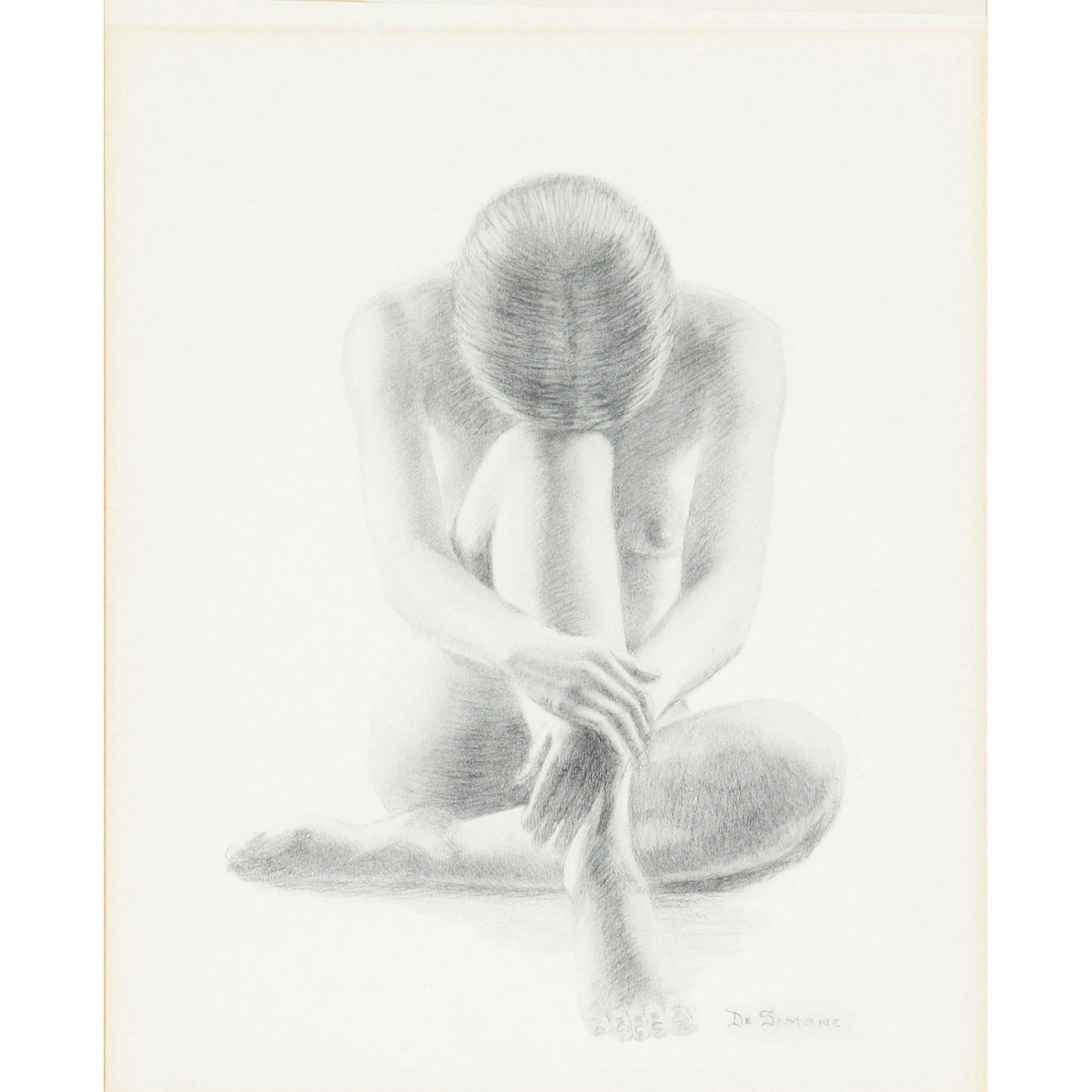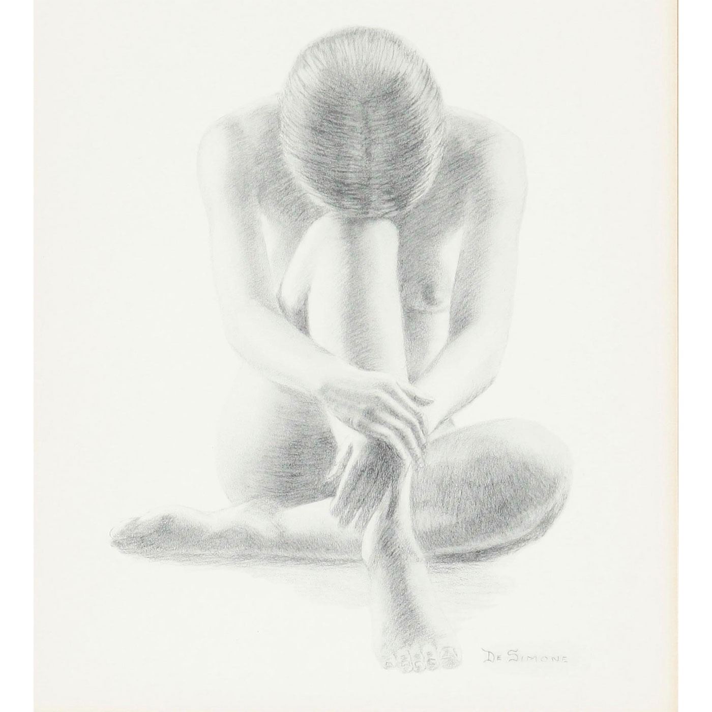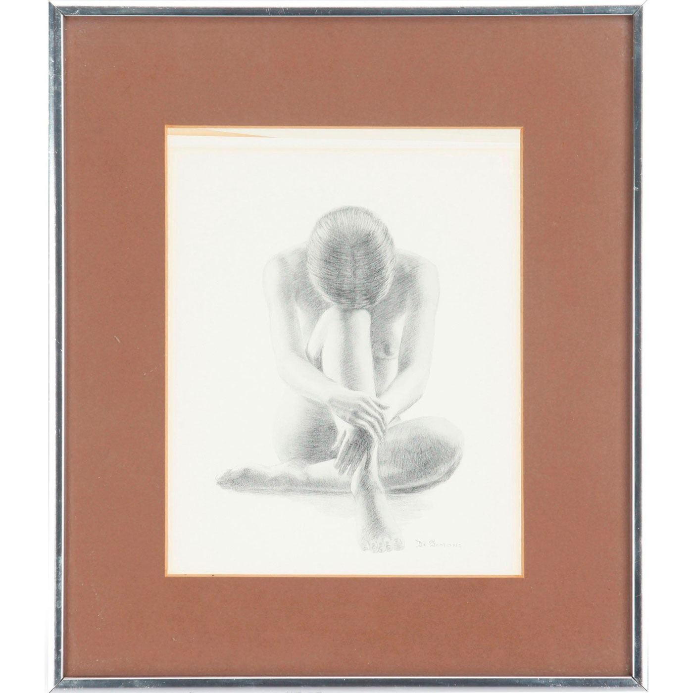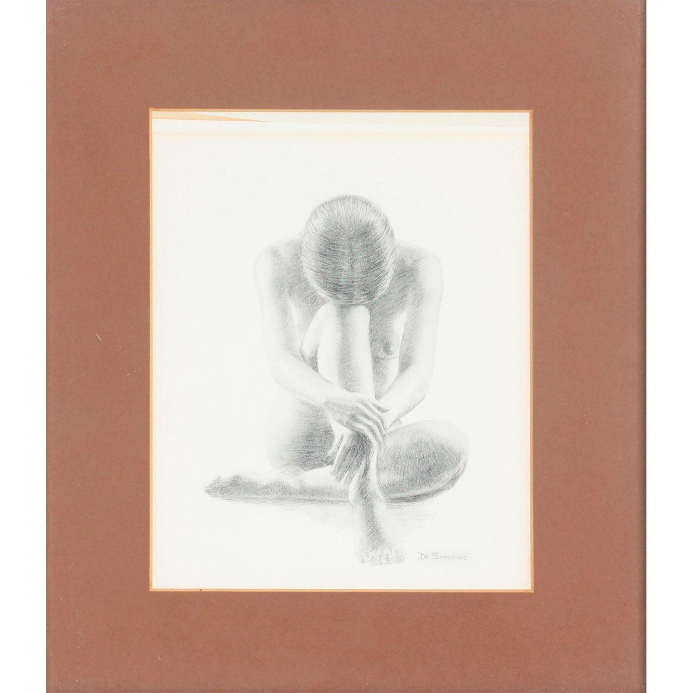 Matte print of a pencil drawing of a nude woman by D. Simone. SLR