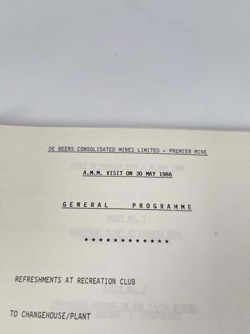 Association of Mine Managers of South Africa Visit, 1986 Technical Visits And General Information