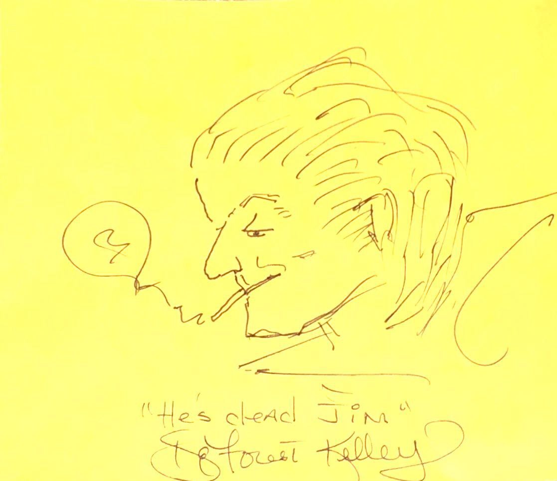DeForest Kelley from the series "Star Trek" Original Sketch and Autograph with the inscription "He's Dead Jim"