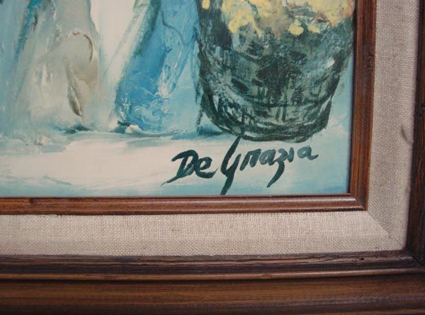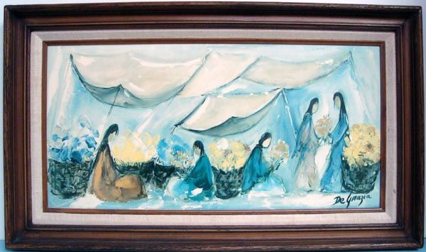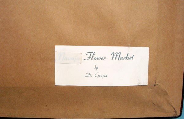 DeGrazia Framed Print ''Flower Market''. Framed in a wood frame, visual measures approx. 11 1/2''H x 23 1/2''W.