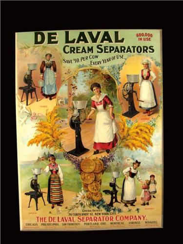 DeLaval Cream Separator Poster, One of the most desirable DeLaval Posters ever printed. Great Color and Graphics. Original bands top and bottom. Excellent condition. 20 X 28 inches.