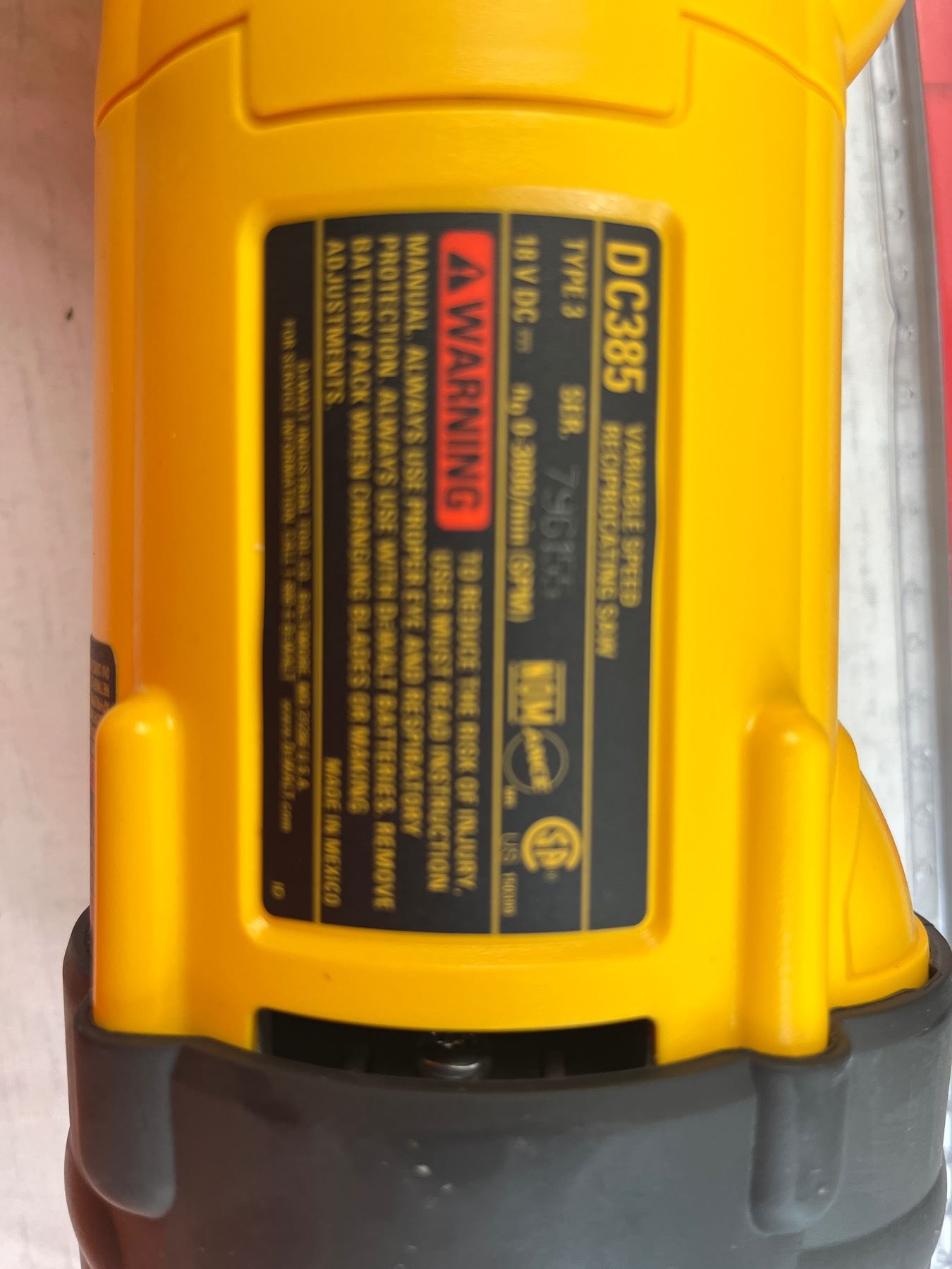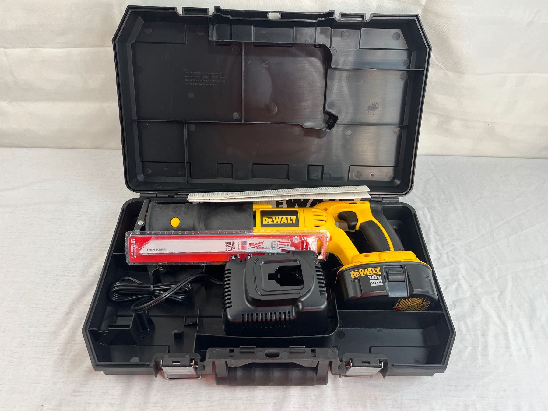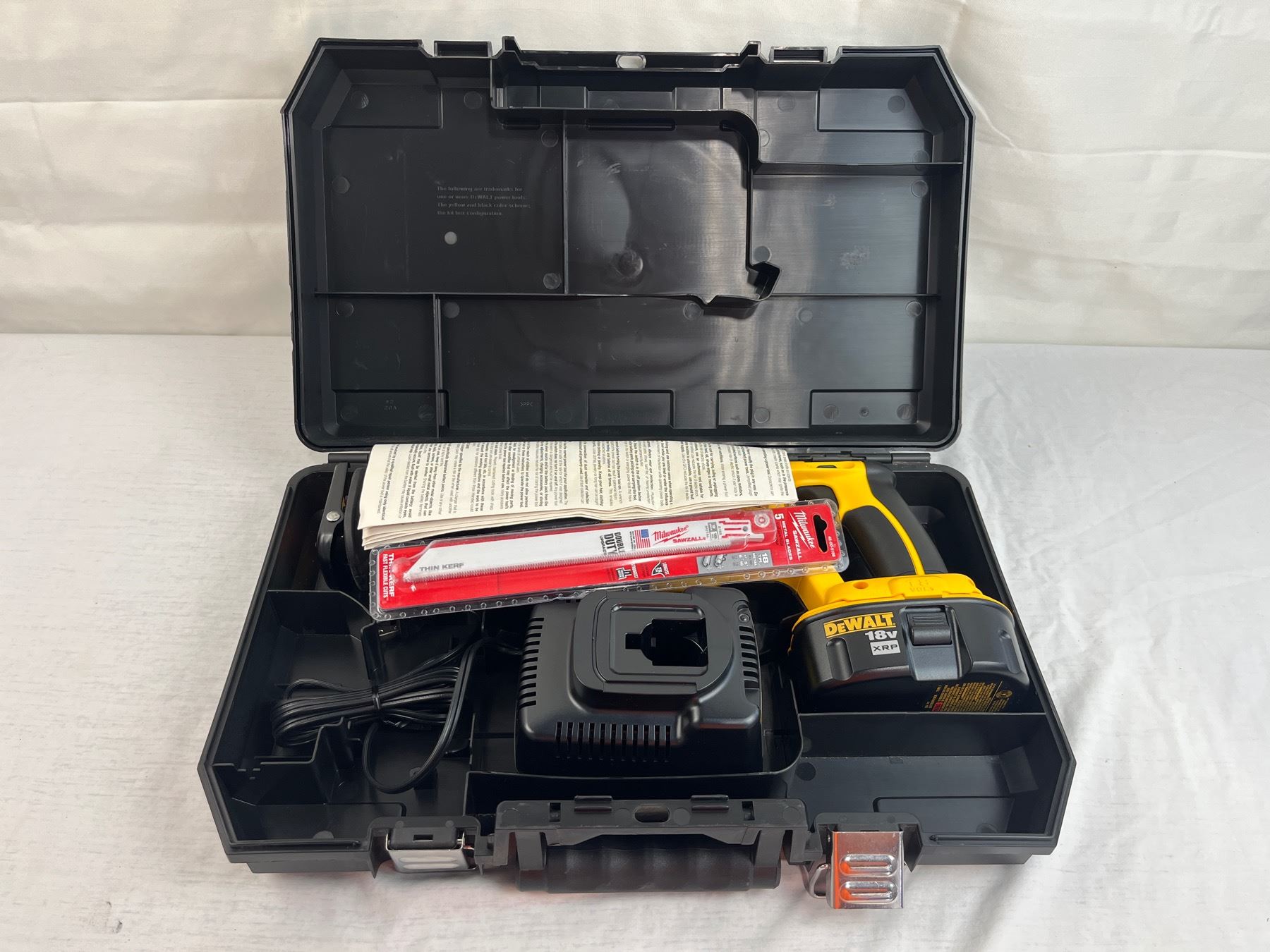 DC 385, 18 Volt - Works - in new condition - Includes battery, charger and new 5 pack of Milwakee metal blades