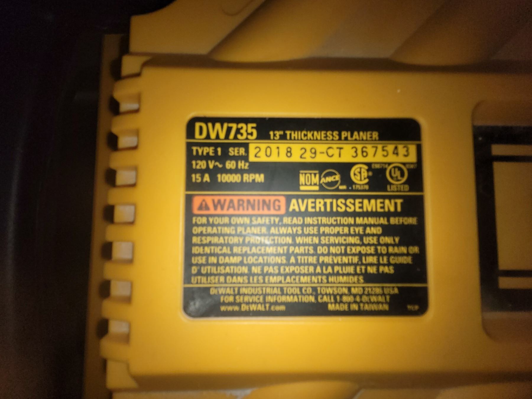 DeWalt planer on stand model 2018 29-CT 367543. Heavy pickup at 11 am