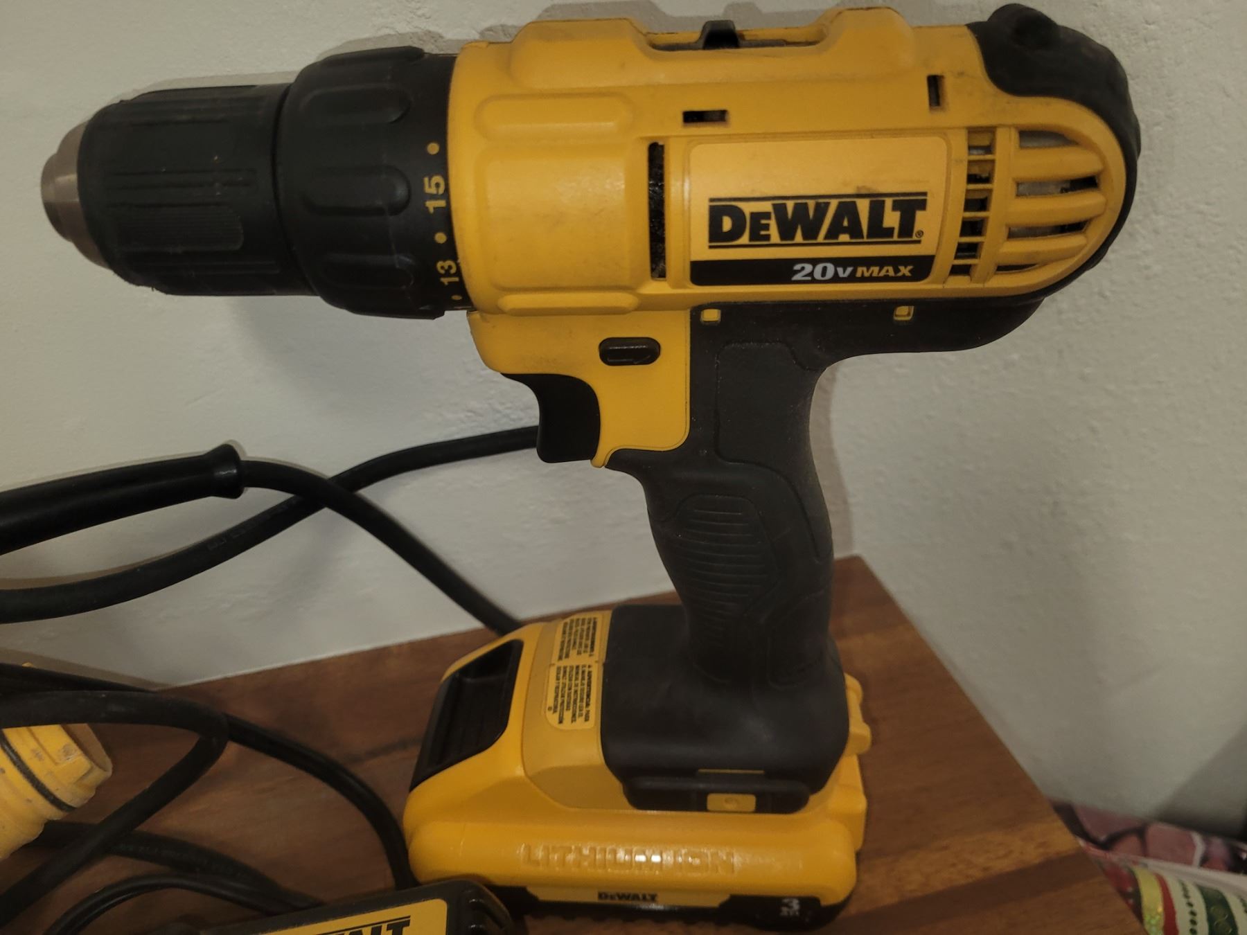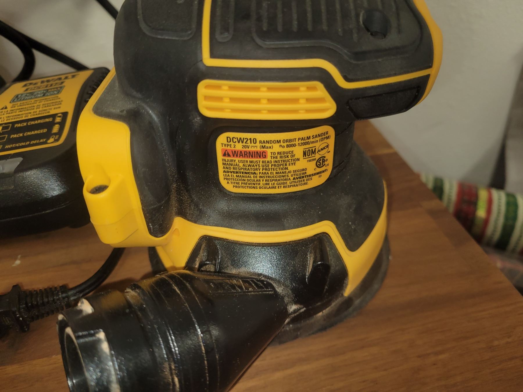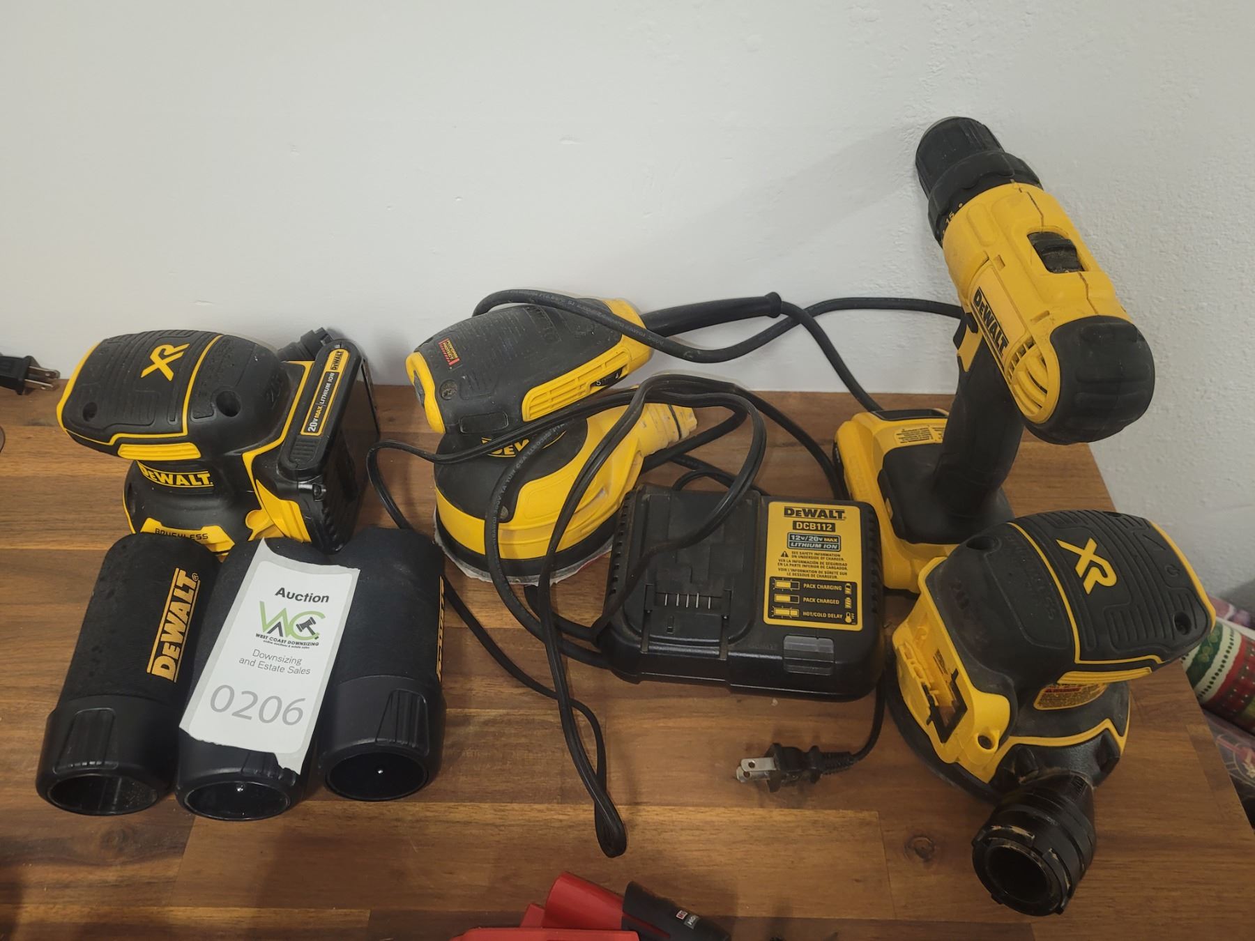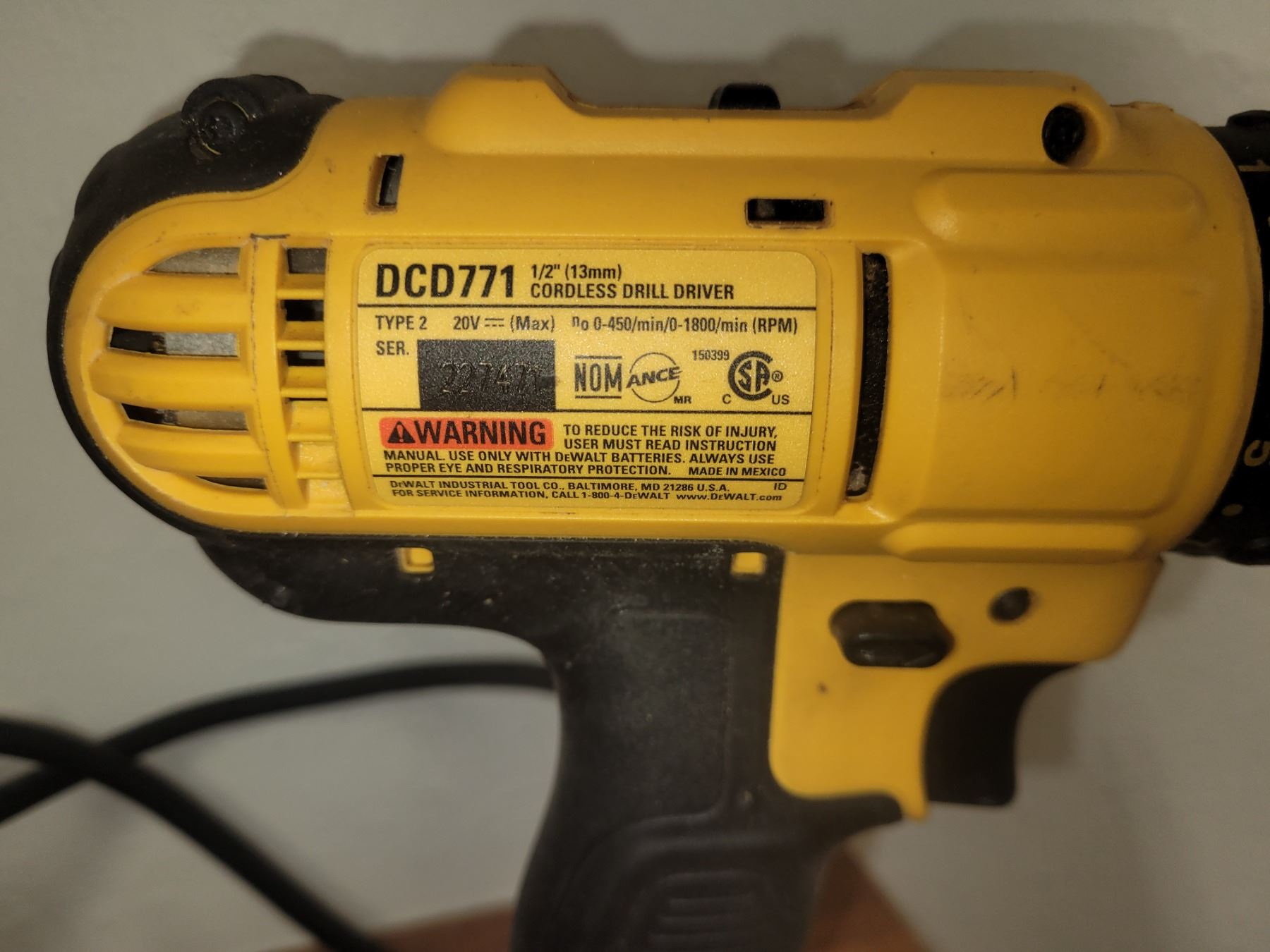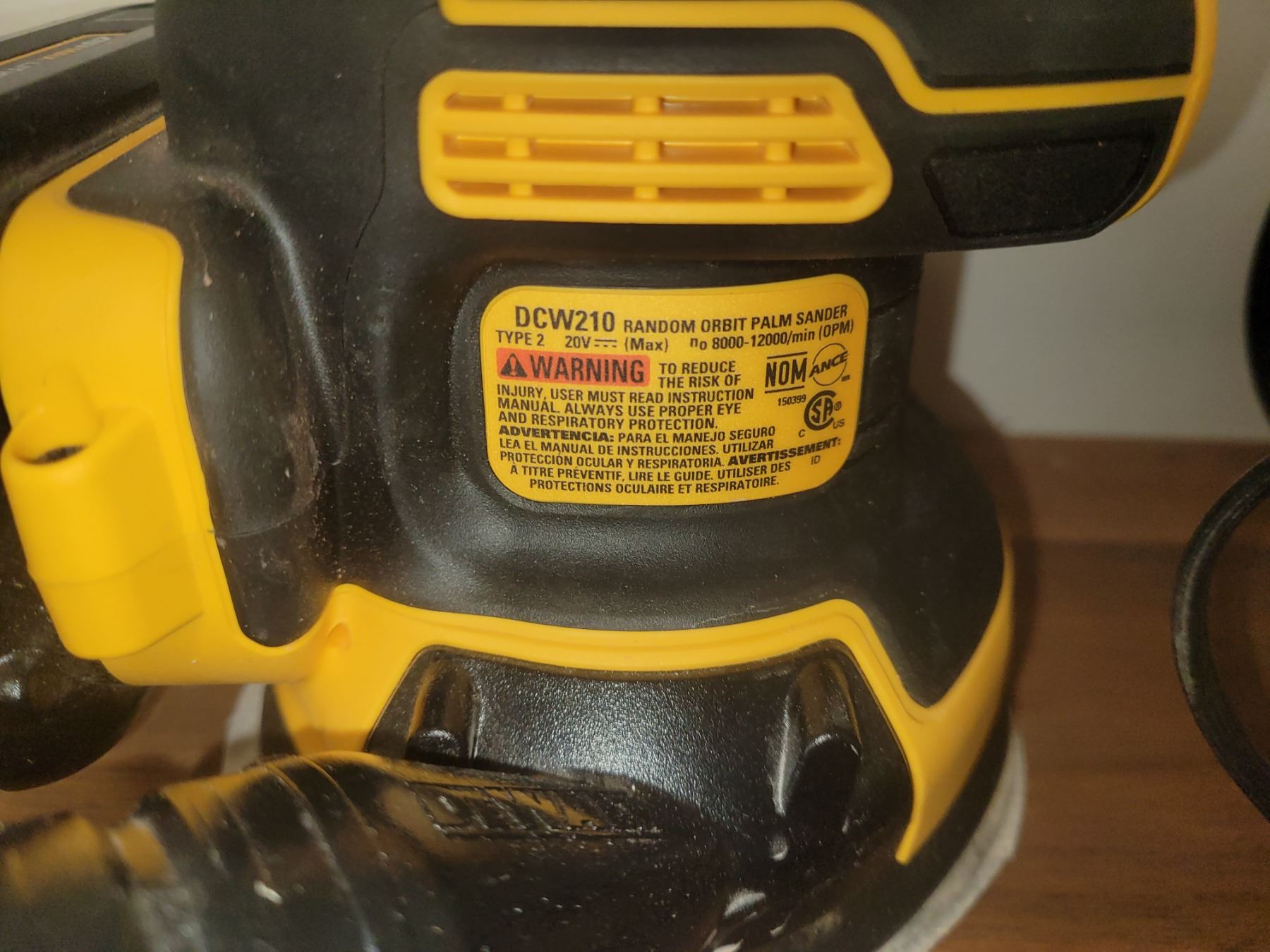 DCW210 Random Orbit Palm Sander, DCD771 1/2" cordless drill driver, battery & charge. Pickup at 10 am