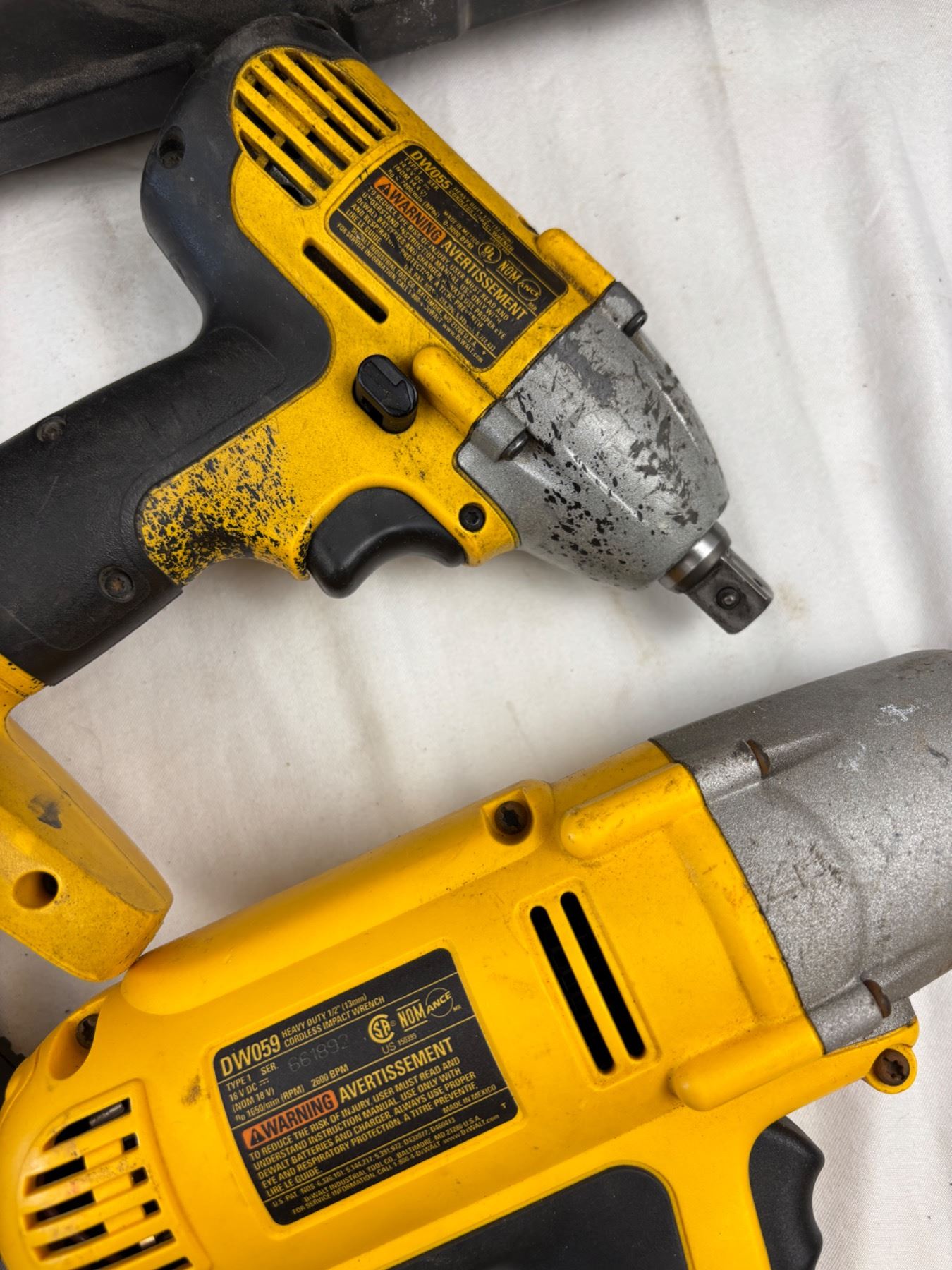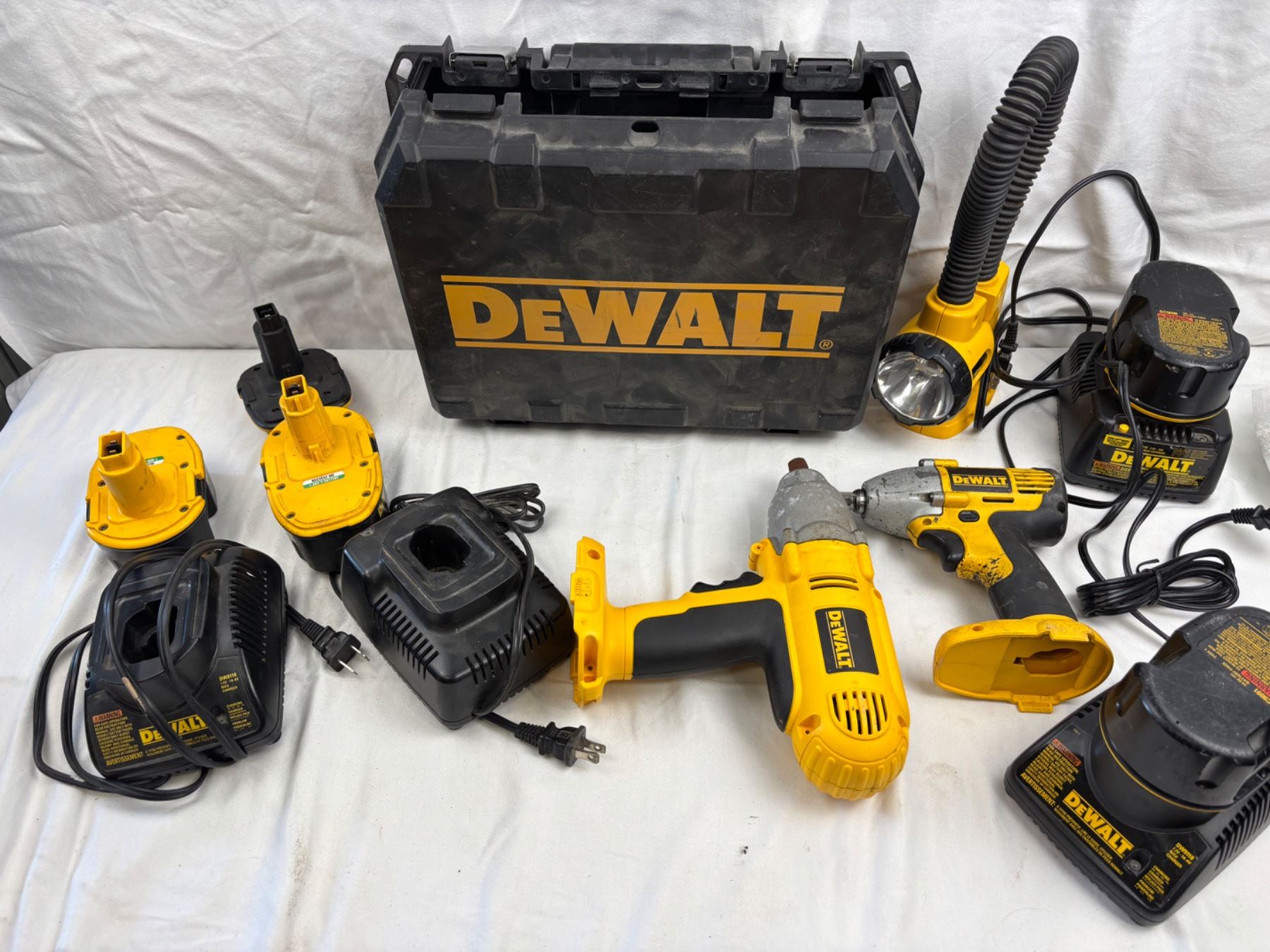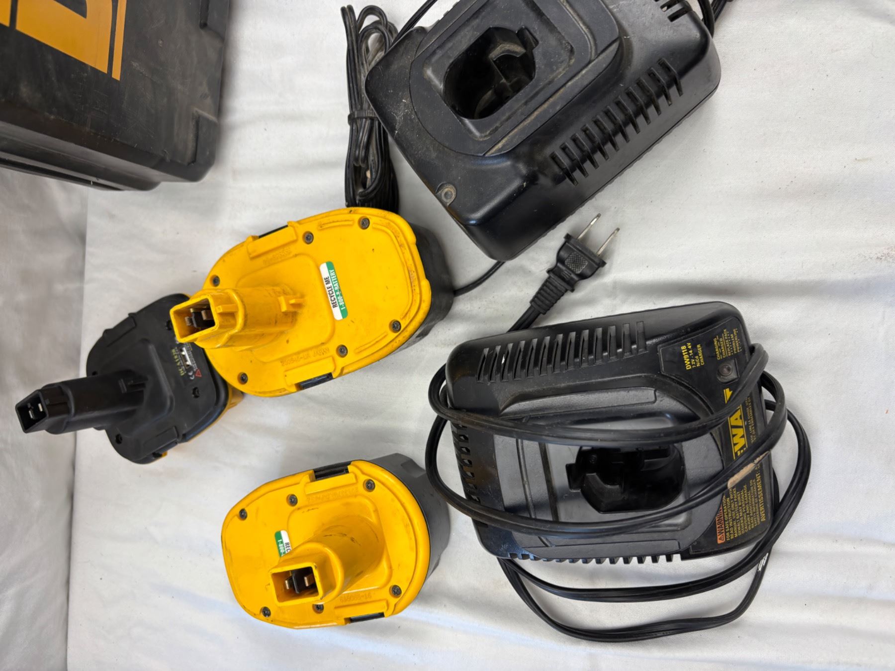 The impact driver has rust on the head, all in working condition, includes various 18v batteries and chargers