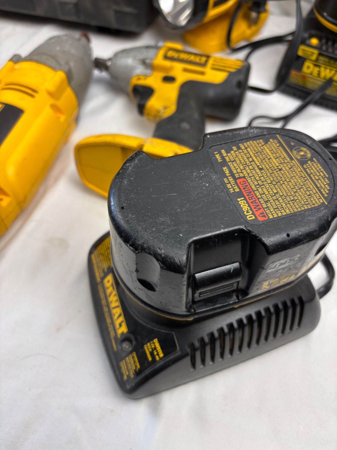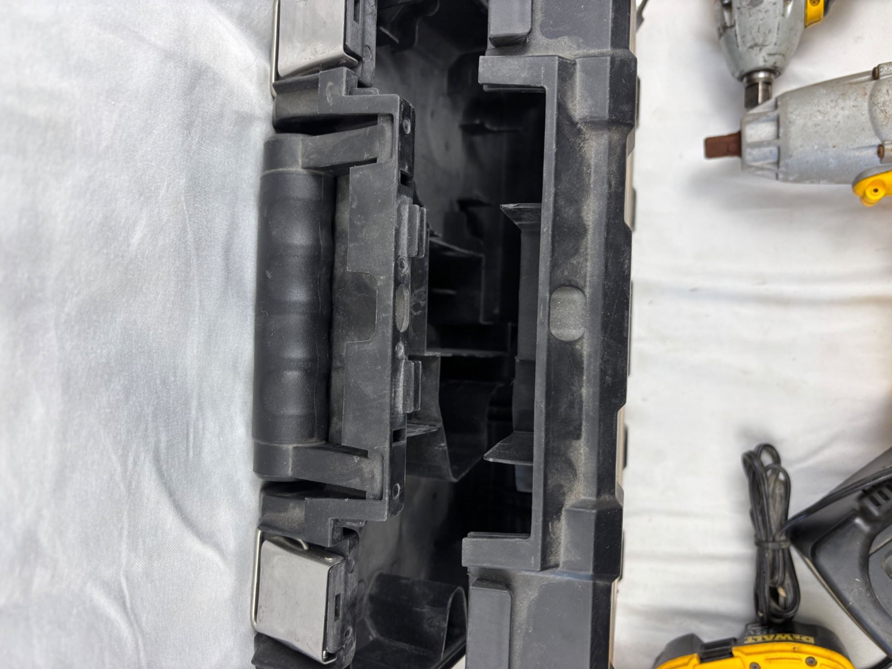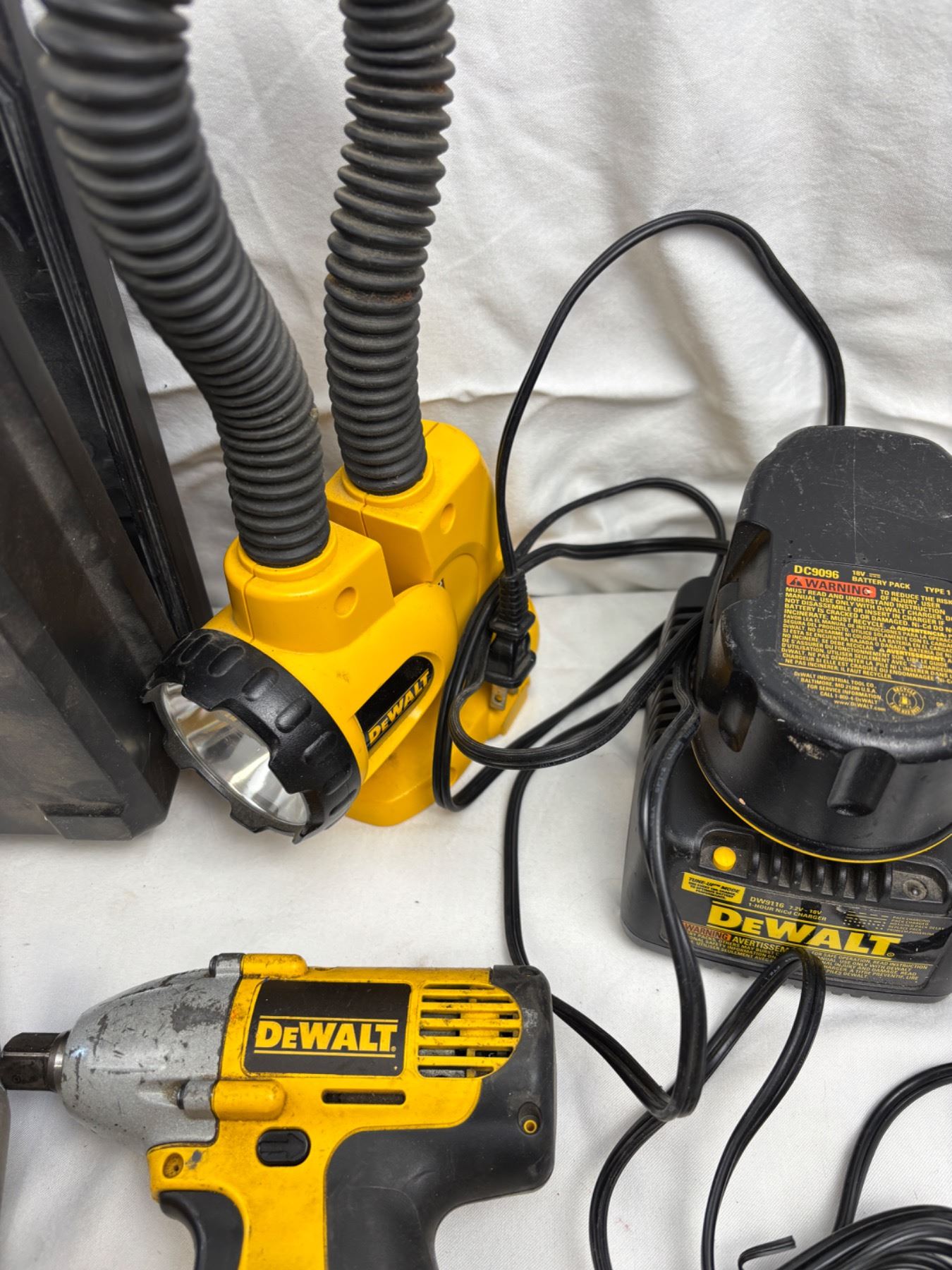 The impact driver has rust on the head, all in working condition, includes various 18v batteries and chargers