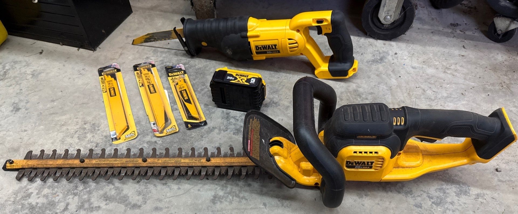 DeWalt Variable Speed Reciprocating Saw (DCS380)& 22" Hedge Trimmer + Battery+Blades