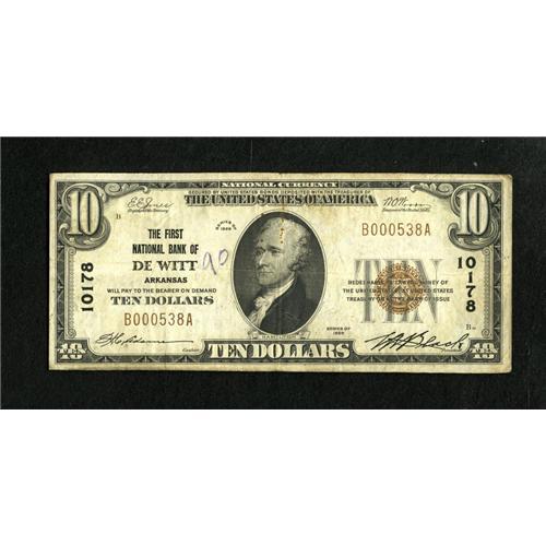 DeWitt, AR - $10 1929 Ty. 1 The First NB Ch. # 1