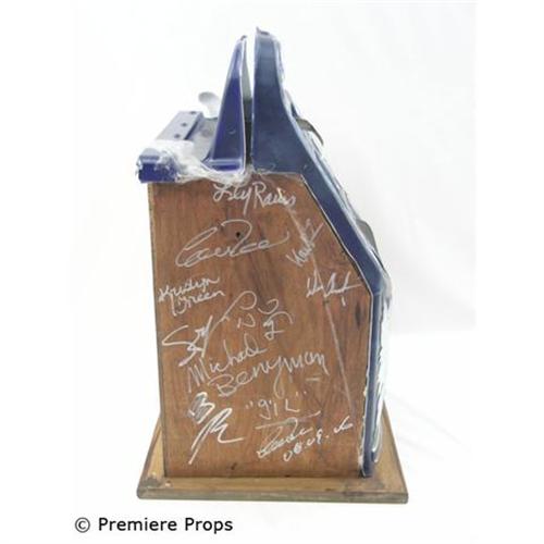 Dead Man's Hand (2007) From the Charles Band horror flick, this is a non working replica, vintage slot machine, made from wood and plastic. Sid Haig and Michael Berryman starred in this recent Full Moon feature and are among the 7 cast members that signed this slot machine when the feature was filmed. This is the 2nd of 16 made. (approx. 14" x 24").