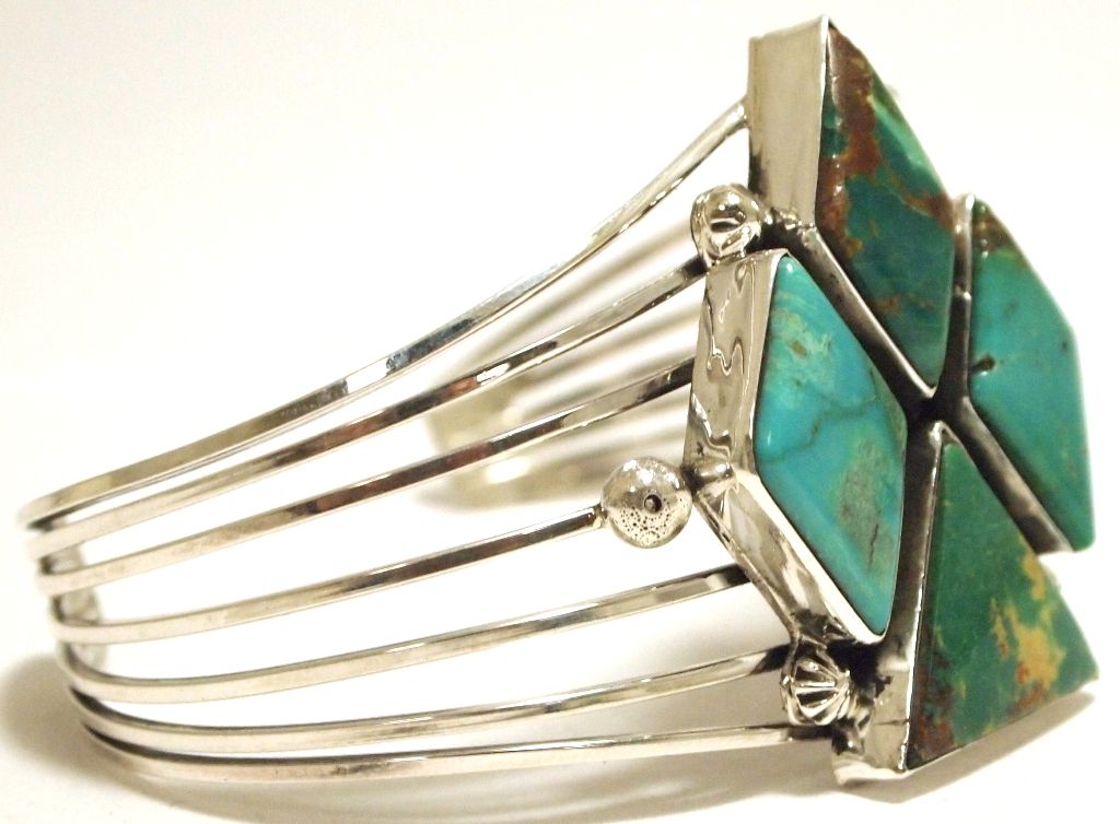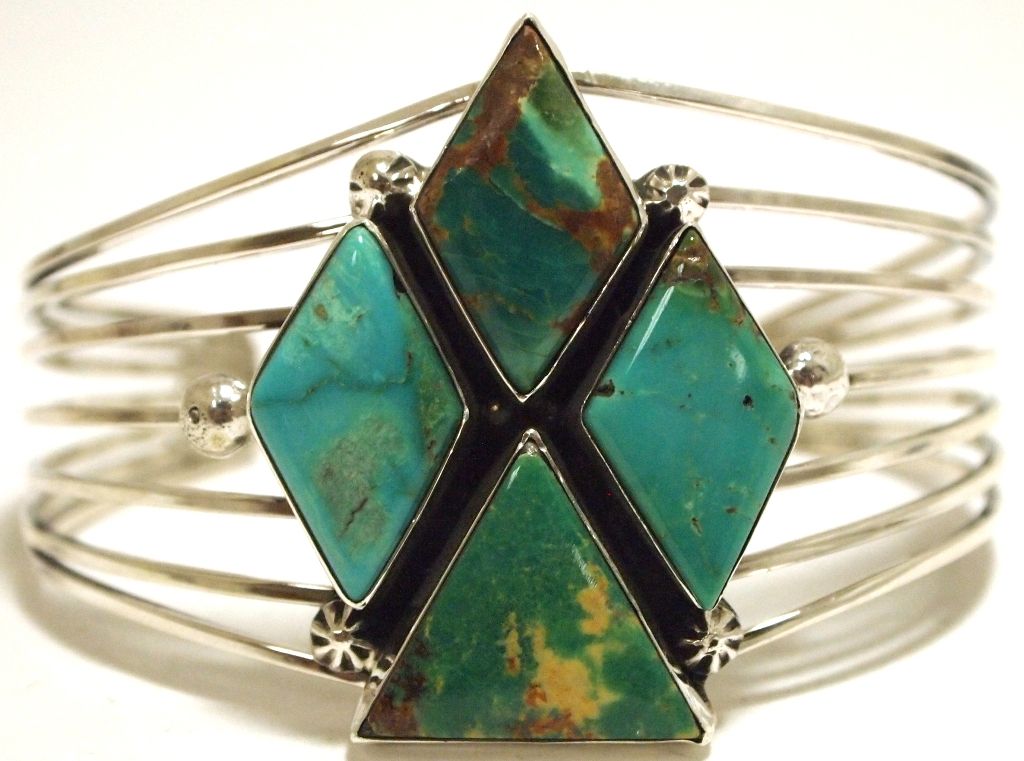 Dead Pawn Navajo Turquoise & Green Fox Turquoise Sterling Silver Cuff Bracelet