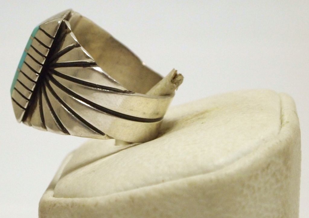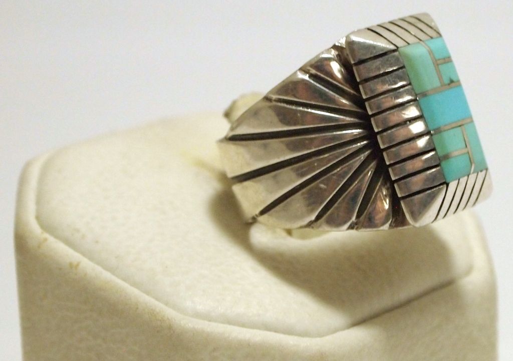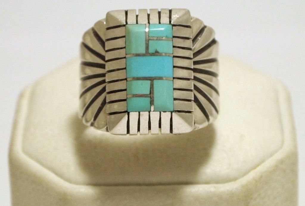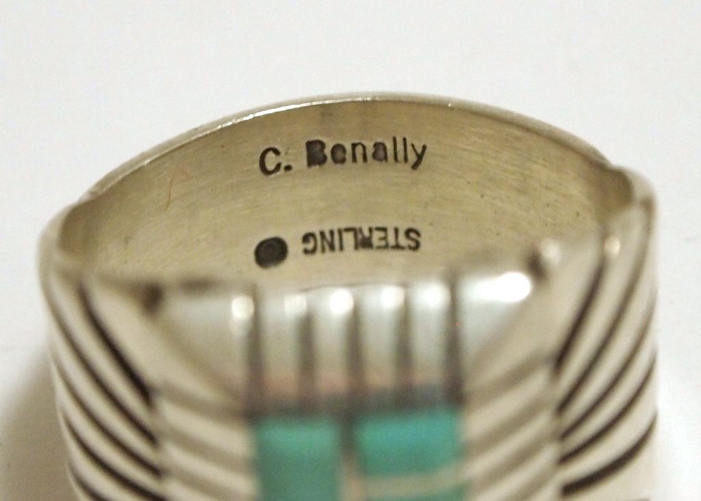 Dead Pawn Navajo Turquoise Inlay Sterling Silver Men's Ring - C. Benally