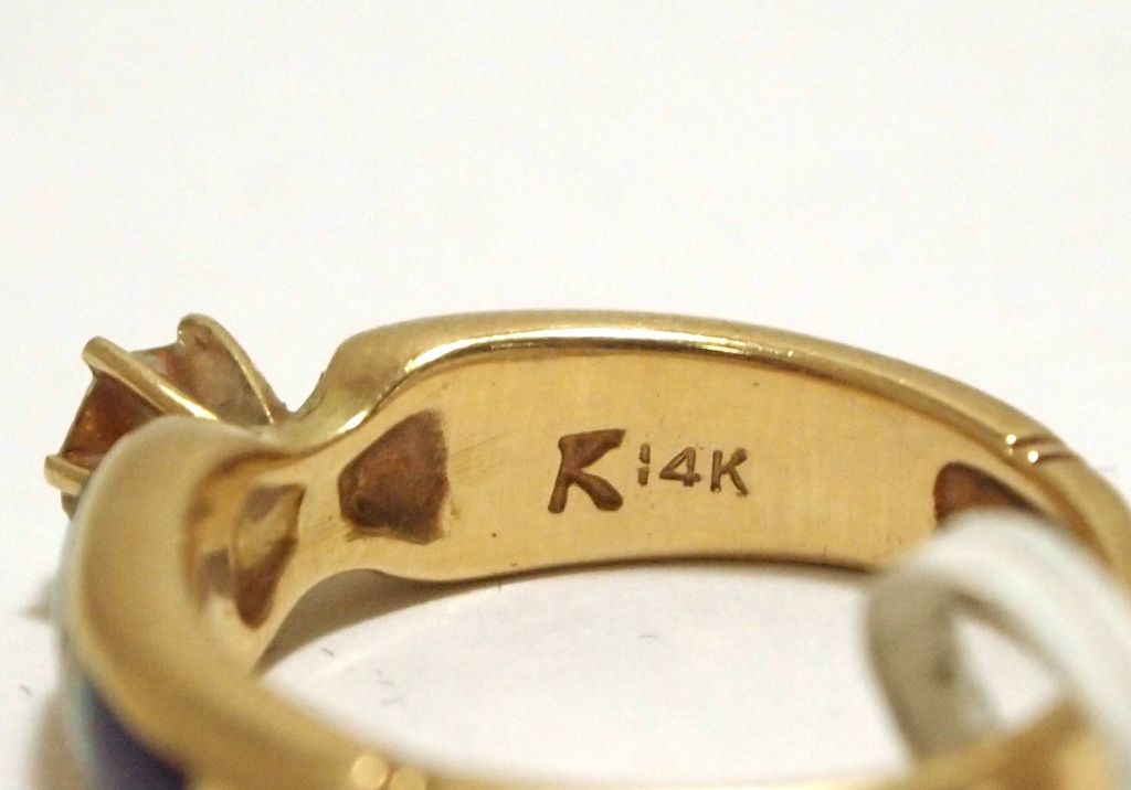 Dead Pawn Zuni Diamond Multi-Stone Inlay 14k Gold Women's Ring - K