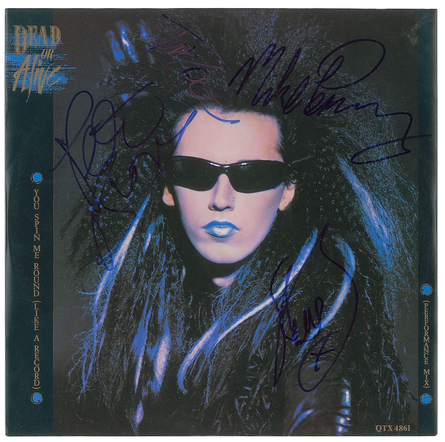 'You Spin Me Round (Like A Record) (Performance Mix)' 12? single album signed on the front of the picture sleeve in blue felt tip by Pete Burns, Mike Percy, Steve Coy, and Tim Lever. In fine condition. The record is included.