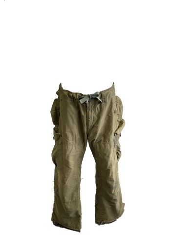 Deadpool 2 (2018) - Cable (Josh Brolin) "American Eagle Outfitters" test, army green cargo pants with green drawstring in the waist, and zipper+button. Inside back tag has "06.1, CG-S1, 22C/1021, AE6 33, 31 Nov 1977" and writing on the back with initials "J.B." and "Fox". Size 34x32.