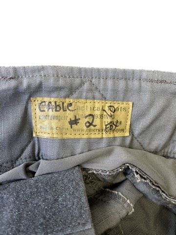 Deadpool 2 (2018) - Cable (Josh Brolin) "Emerson Gear" grey tactical pants, test. Pockets with zippers all over legs and velcrow waist with elastic. Inside back tag says "emersongear" and "ITEM EM9351WG". In marker on the tag the writing says "Cable, #2, 10, Fox"