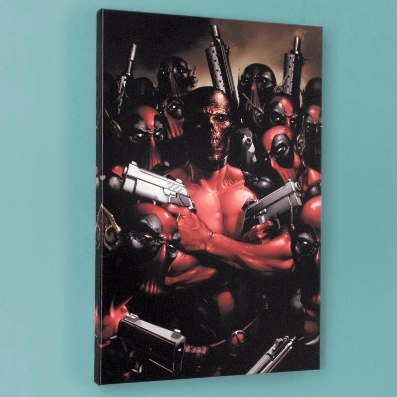 A piece of comic book history, this limited edition, from original art by Clayton Crain, depicts a multitude of Deadpools. Clayton Crain is an American comic book artist, who primarily uses digital painting techniques in his art. He is best known for his works on Ghost Rider: Road to Damnation, Venom vs. Carnage and Sensational Spider-Man (vol. 2). Crain's current work is X-Force for which he does both the covers and interior art. "Deadpool #2" is a limited edition giclee on canvas by Clayton Crain presented by Marvel Comics! This piece comes gallery wrapped and ready to hang. Includes Certificate of Authenticity! Measures approx. 18" x 27" (image). Retail Price $500.00. PRICE INCUDES FREE SHIPPING IN THE U.S. - SHIPPING WILL BE ADDED TO YOUR INVOICE FOR ALL BUYERS OUTSIDE OF THE U.S.