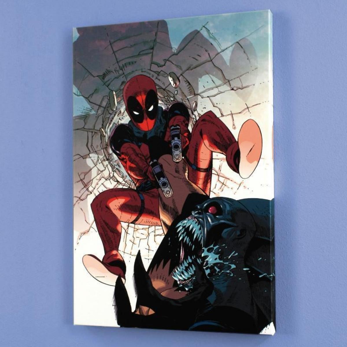 A piece of comic book history, this limited edition, from original art by Jason Pearson, depicts an epic image of Deadpool. Jason Pearson has drawn the cover art for many Marvel franchises, including X-Men and Deadpool. "Deadpool #6" is a limited edition numbered giclee on stretched canvas by Jason Pearson presented by Marvel Comics. This piece comes gallery wrapped. Includes Certificate of Authenticity! Measure approx. 18" x 27" (image); 1.5" (depth).