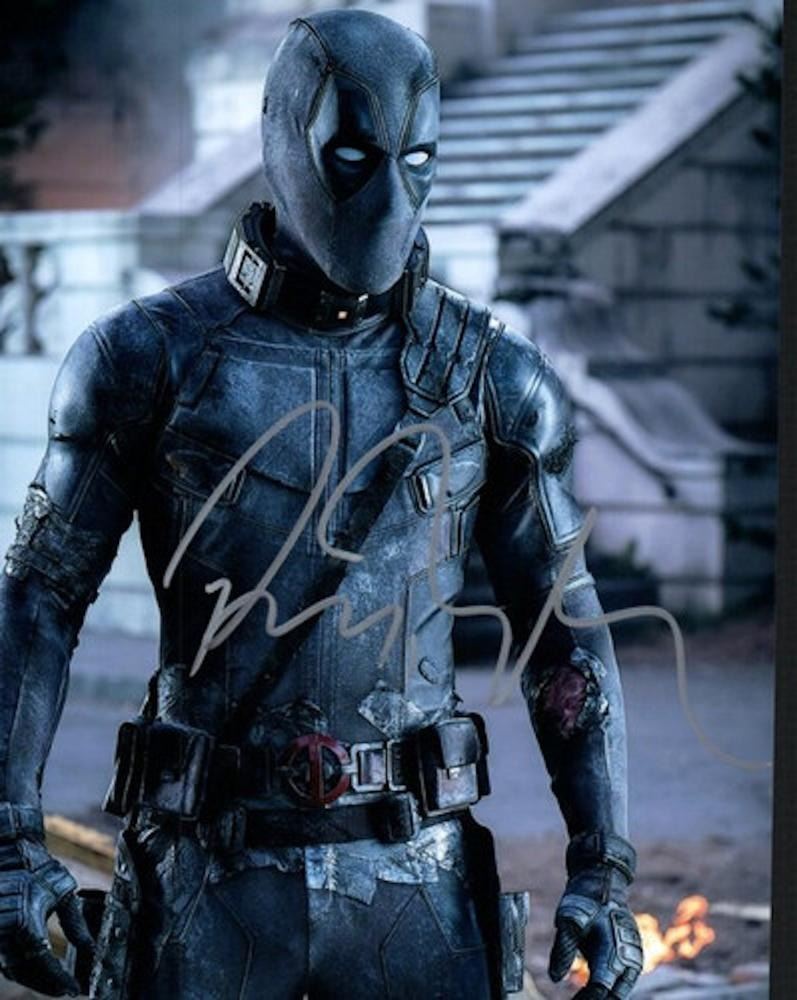 Deadpool Ryan Reynolds facsimile signed photo. 8x10 inches. This item is a reprint of an original autograph