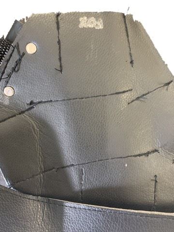 Deadpool test sword scabbard with black leather pouch and strap. "Fox" written in white ink on the backside.