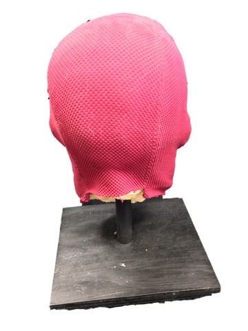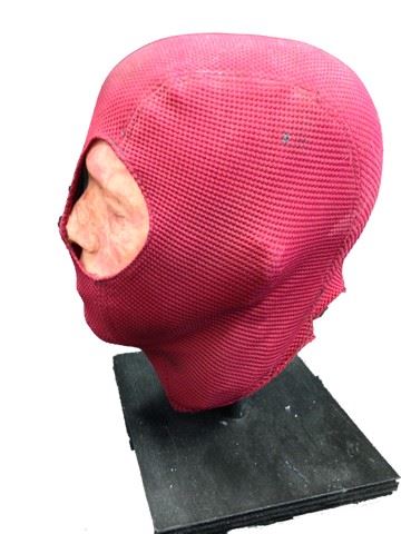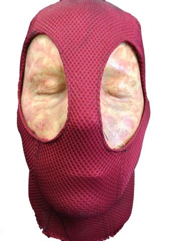 Deadpool (2016)- From the first installment comes Deadpool's/ Wade's (Ryan Reynolds) screen used, infamous, red, hero Deadpool mask on Ryan Reynolds actual face casting. Cast is made out of latex foam and is mounted on a display. Measures (14x9)