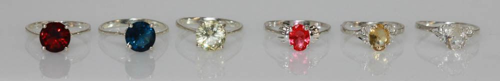 Deal of The day Variety of Muti Color Rings Total of; 6 **|**|** Deal of The day Variety of Muti Color Rings Total of; 6, .925 Sterling Silver Plated. Clear CZ Ring, Tan CZ Ring, Light Red CZ Ring, Red CZ Ring, Clear CZ Ring. Blue CZ Ring. All Rings Are .925 Sterling Silver