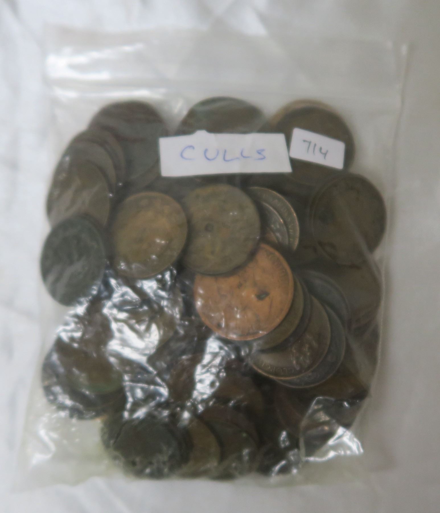 Dealer Special. 108 Canadian Large Cents from Victoria, Edward VII & George V. All with problems such as bent, cleaned, corrosion, holed etc.