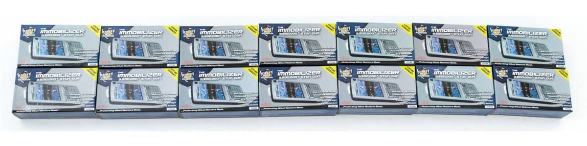 Dealer's Lot of Fourteen (14) Streetwise Immobilizer Stun Guns, with LED flashlight and safety switch. All brand new in original boxes with instructions. Retail @ $34.95 each. Est.: $250-$350/lot. (Field Time)