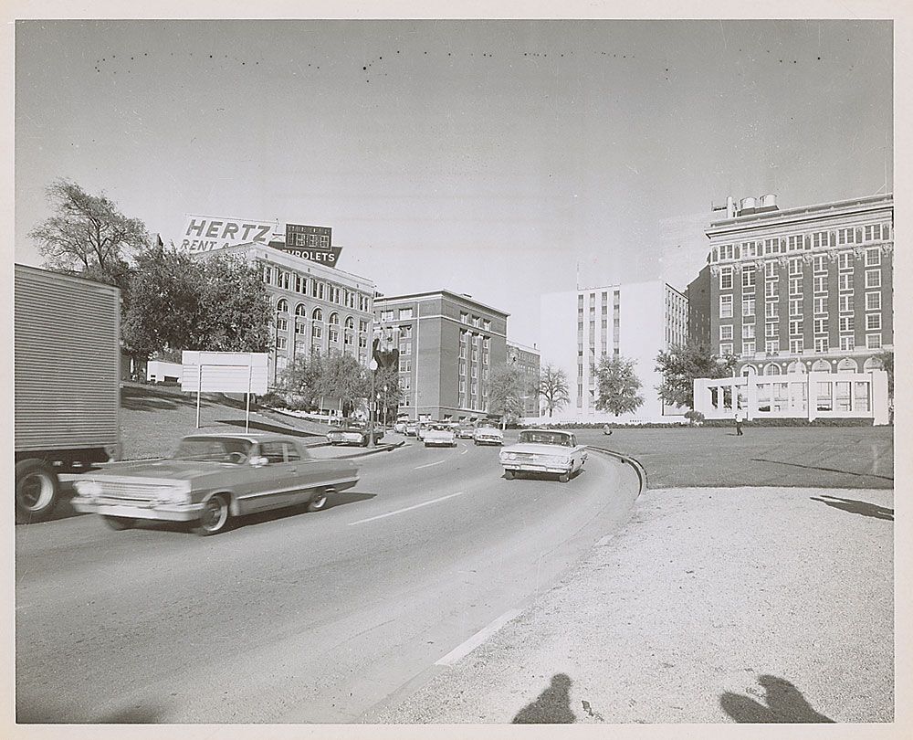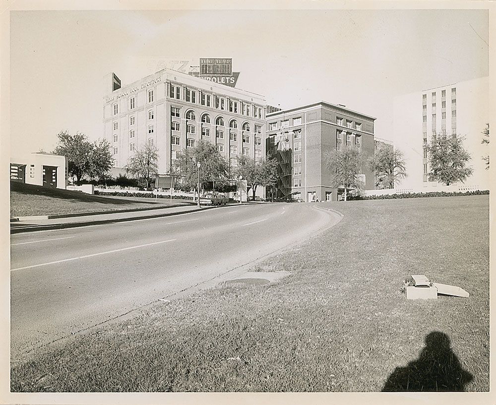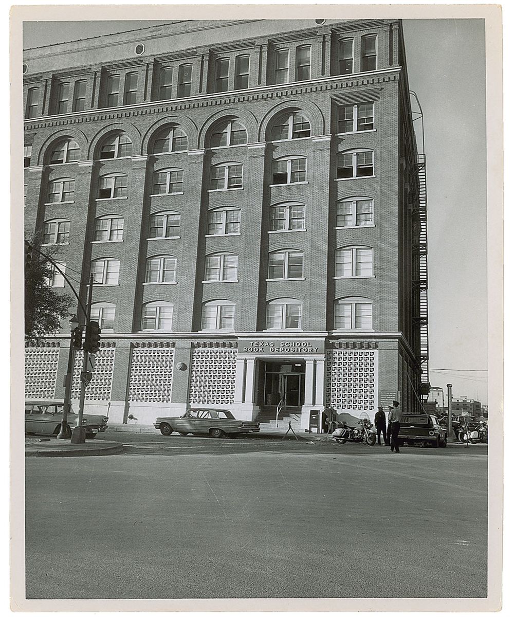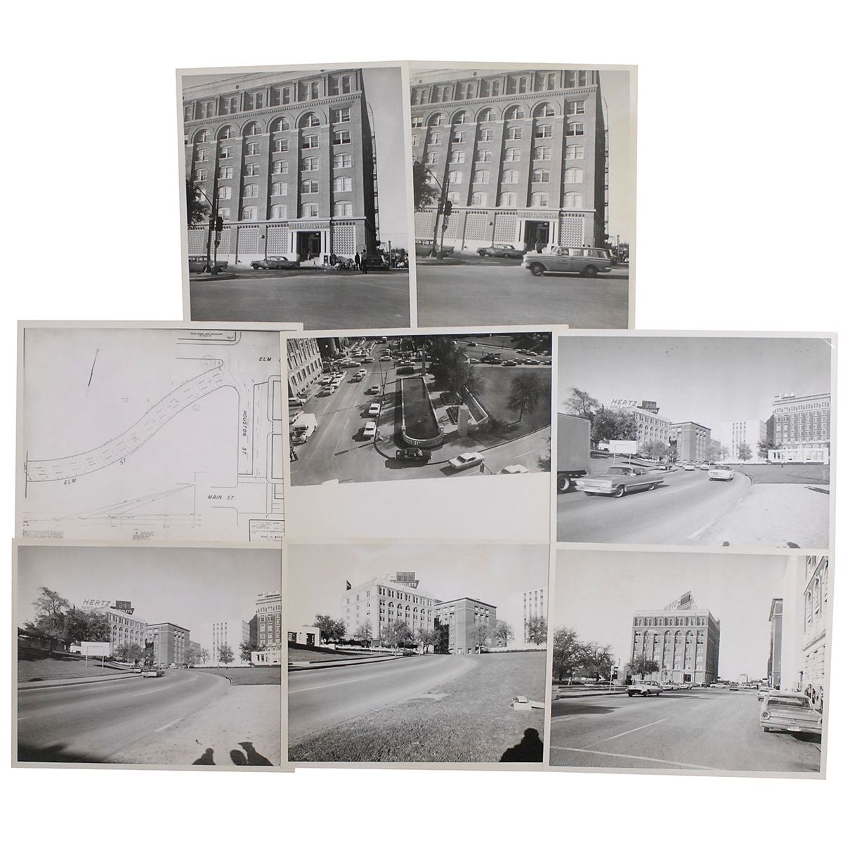 Eight vintage glossy Dallas Police Department photos of Dealey Plaza, 8 x 10 and 10 x 8, two showing the Texas School Book Depository, five of the general area from different street angles, and one of a map of Elm Street. All but one bear red ink stamps on the reverse that read, “This photograph made and developed by Bureau of Identification, Police Department, Dallas Texas,” and many are briefly described on the reverse in an unknown hand. In overall fine condition.