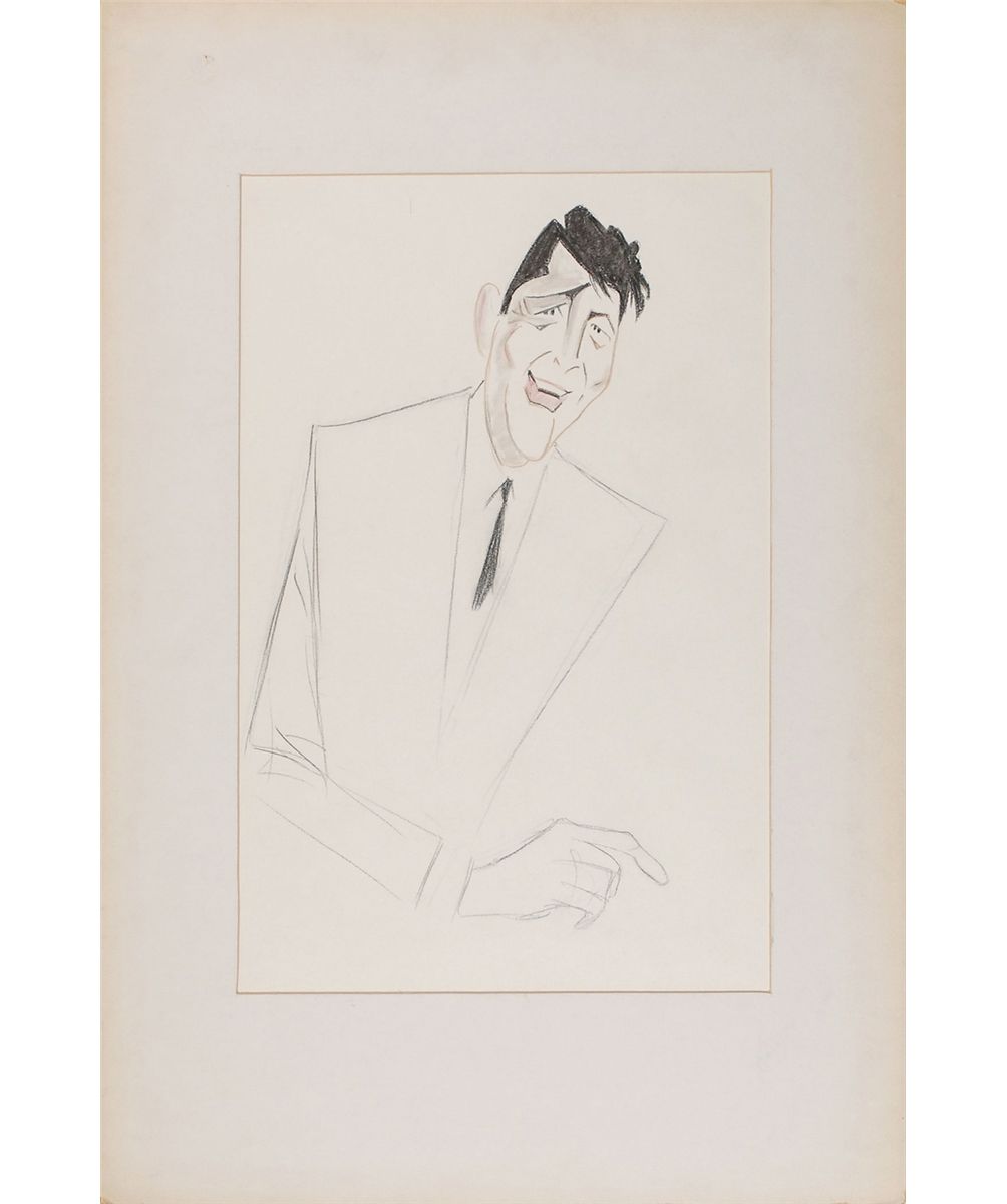 Original vintage unsigned pencil and pastel caricature of Martin by Kroll, 13 x 20. Matted to an overall size of 20 x 30. In fine condition, with a bit of expected light soiling to background, some scattered toning to mat. Kroll was an artist for a Berlin newspaper until he left in 1933, wary of the rising power of Adolph Hitler. He immigrated to America in 1933 and was quickly utilized by the Saturday Evening Post, The New York Times, and various other newspapers. While he drew almost every political figure in the world for these publications, his real passion was Hollywood. Kroll produced thousands of great caricatures including presidents from Franklin D. Roosevelt through Nixon, Malcolm X, the Beatles, and everyone in between. Oversized.