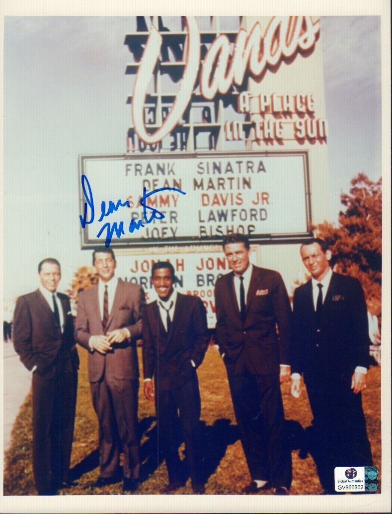 Color 8x10 photo of The Rat Pack signed by Dean Martin. The signature has been certified by Global Authentics and issued number GV866862. All items come with a certificate of authenticity good for the life of the piece.