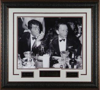 Frank Sinatra: (1915 – 1998); Singer, Actor, Entertainer. 13 Grammy Awards, 4 Golden Globes, 3 Academy Awards, and Awarded the Presidential Medal of Freedom. Dean Martin: (1917-1995) Singer, Film actor, Television star and Comedian. A black and white 16x20 photo of them in a party situation, matted and framed as shown with a engraved replica signature plate, featuring the quote "I feel sorry for people who don't drink. They wake up in the morning and that's the best they're going to feel all day." Custom Matted and Premium Leather Framing to overall size 30x27