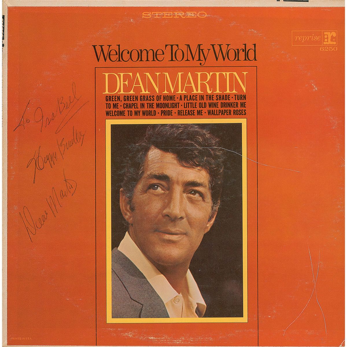 Two albums: Welcome to My World album signed and inscribed on the front cover in black ballpoint, “To Ira Beel, Happy Birthday, Dean Martin”; and a Just Sings album signed on the front cover in blue ballpoint, “Always, Jerry Lewis, 11/56.” In overall very good condition, with scattered surface marks, dings, and a light ‘ring of wear’ to the Martin album, and scattered soiling to the Lewis album. Both records are included.