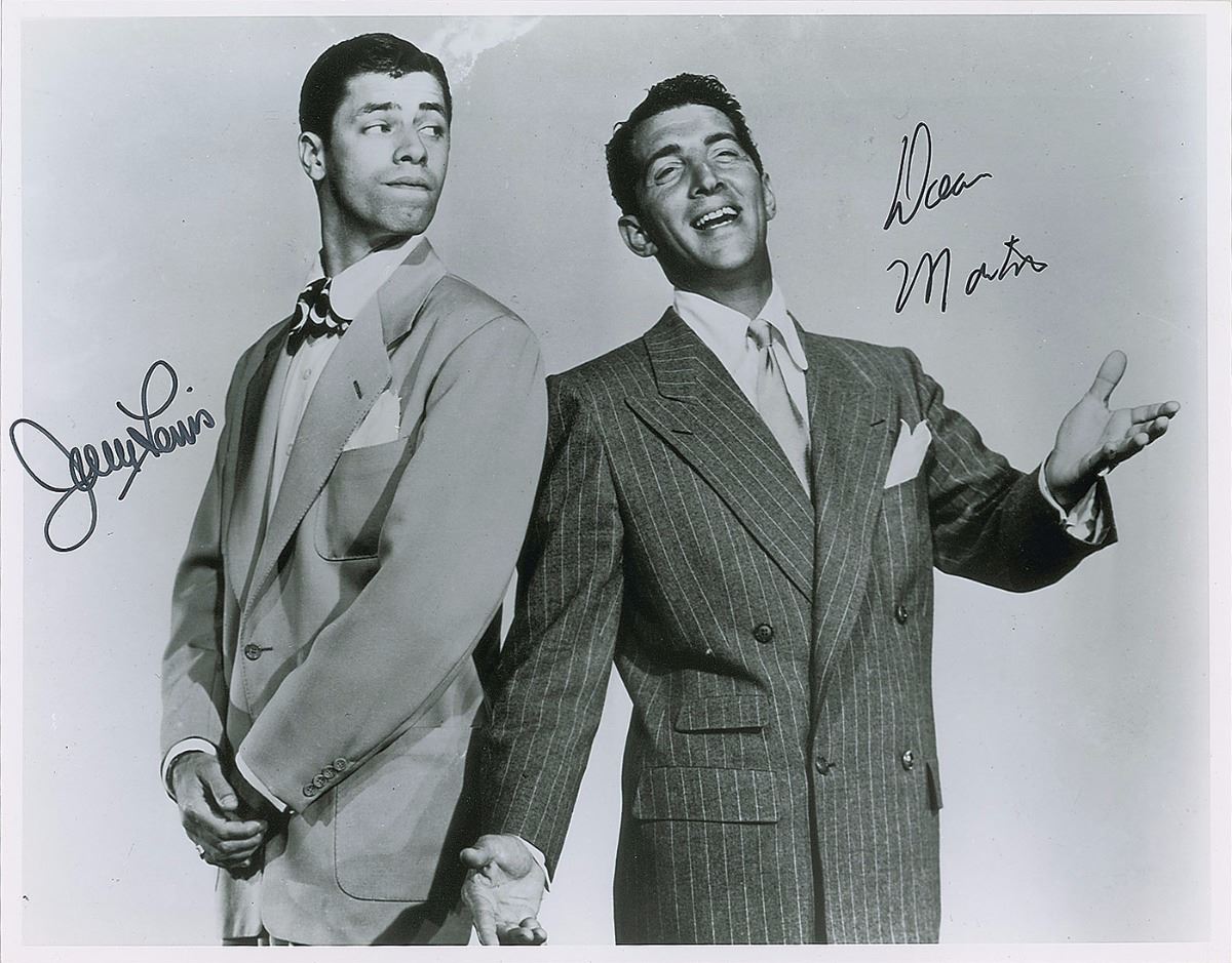 Satin-finish 14 x 11 photo of the Martin and Lewis comedy duo, both signing in black felt tip. In fine condition.