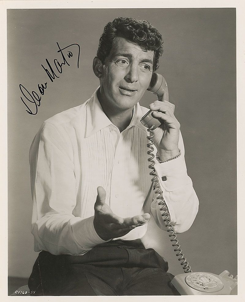 Glossy 8 x 10 photo of Martin talking on the telephone, signed in black felt tip. A diagonal crease to the left side, otherwise fine condition.