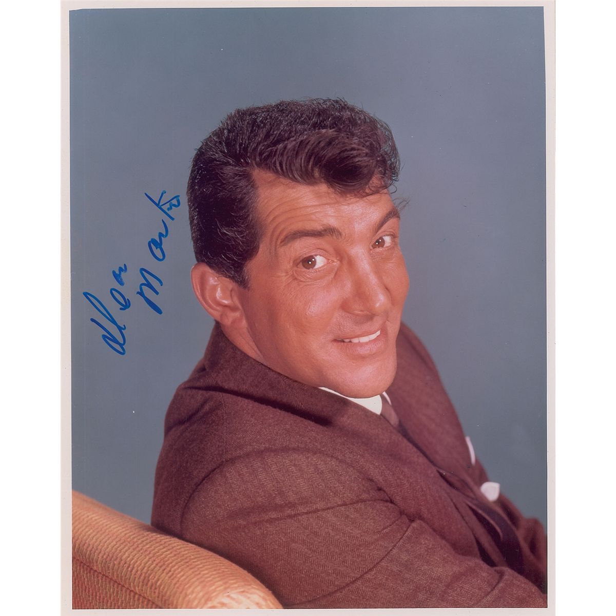 Handsome color glossy 8 x 10 photo of Martin in a brown suit, signed in blue felt tip. In fine condition.