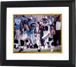 On April 29, 2006, Deangelo Williams was selected by the Carolina Panthers with the 27th overall pick in the NFL Draft. In 2008, Williams set a franchise record for rushing touchdowns in one game by scoring four touchdowns in a week 13 game against the Green Bay Packers. In week 15 of the 2008 season, Williams was selected FedEx Ground Player-of-the-Week after a dominating performance in which he rushed for 186 yards on 19 carries and 2 touchdowns vs. Tampa Bay Buccaneers on Monday Night Football. During the 2010 Pro Bowl, DeAngelo Williams scored a touchdown on a 7 yard run, the first by a Panthers player in team history. Deangelo Williams has hand autographed this Carolina Panthers 16X20 Photo. Custom White Mat and Premium Black Frame as shown. Williams hologram and Certificate of Authenticity from Athlon Sports.